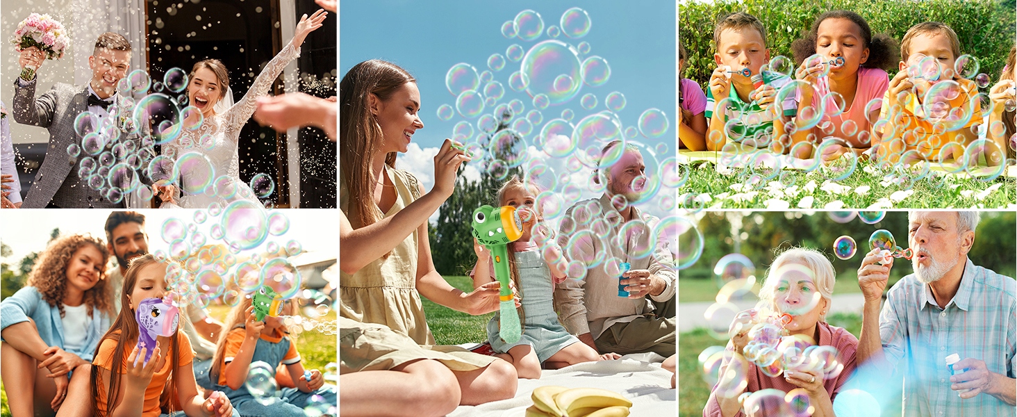 - ⭐Випускає понад 7000 різнокольорових бульбашок на хвилину. Він також оснащений світлом і музикоюдля створення романтичної та чарівної атмосфери з різнокольоровими бульбашками, які розважатимуть дітей у будь-який час дня