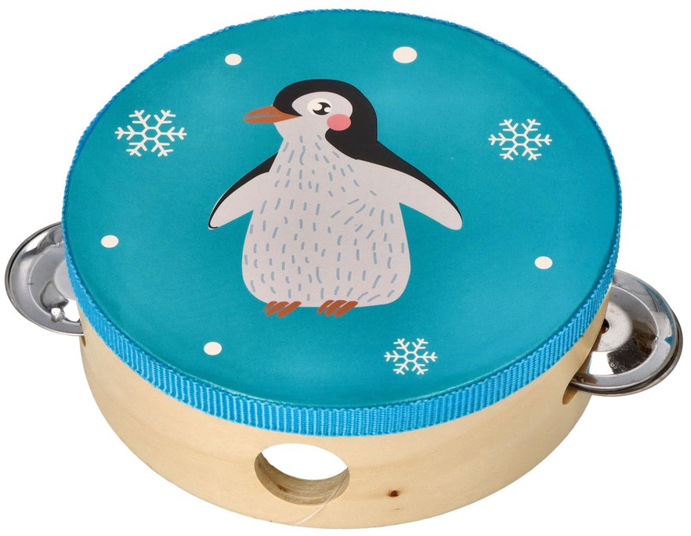Бубон Adam Toys з трьома дзвіночками на дерев'яній рамі. Перетинка прикрашена пінгвіном
