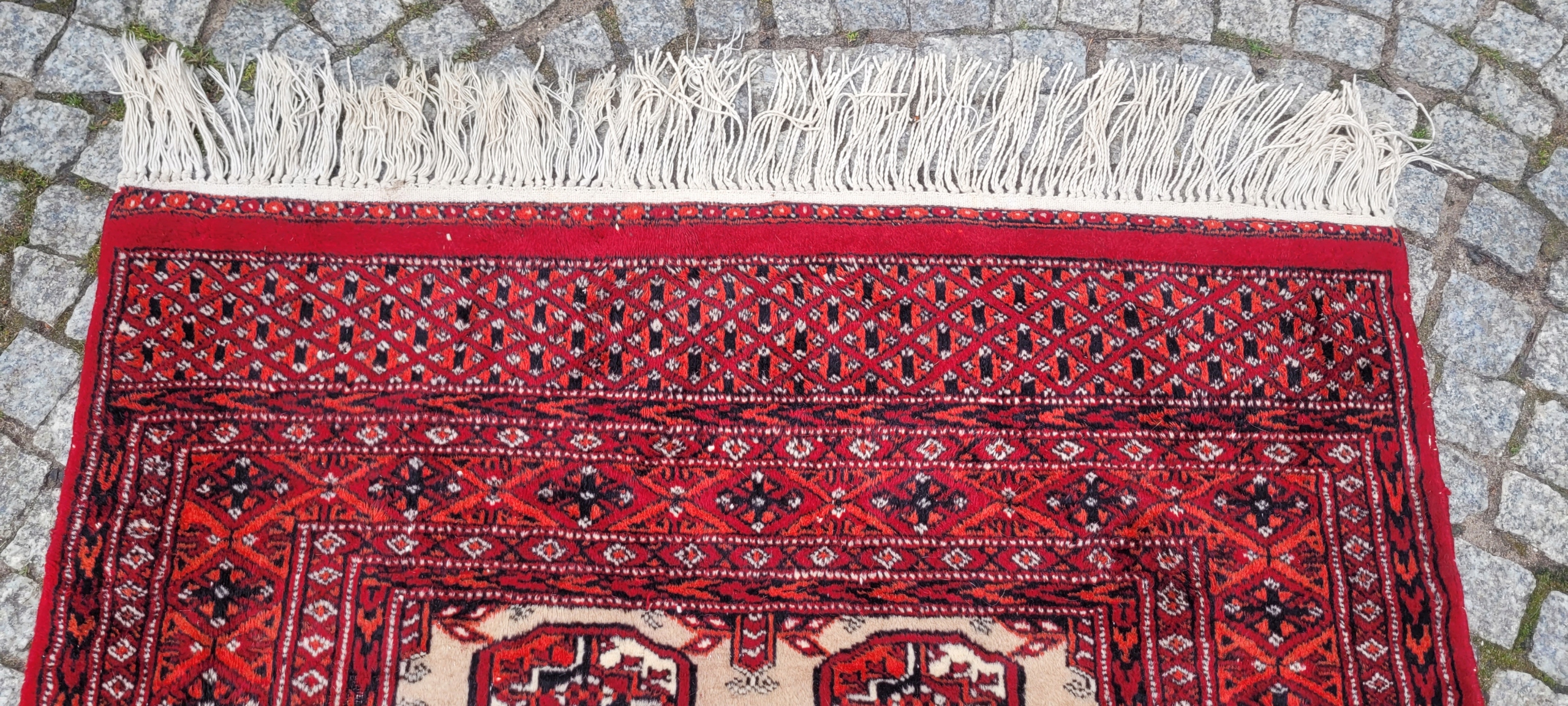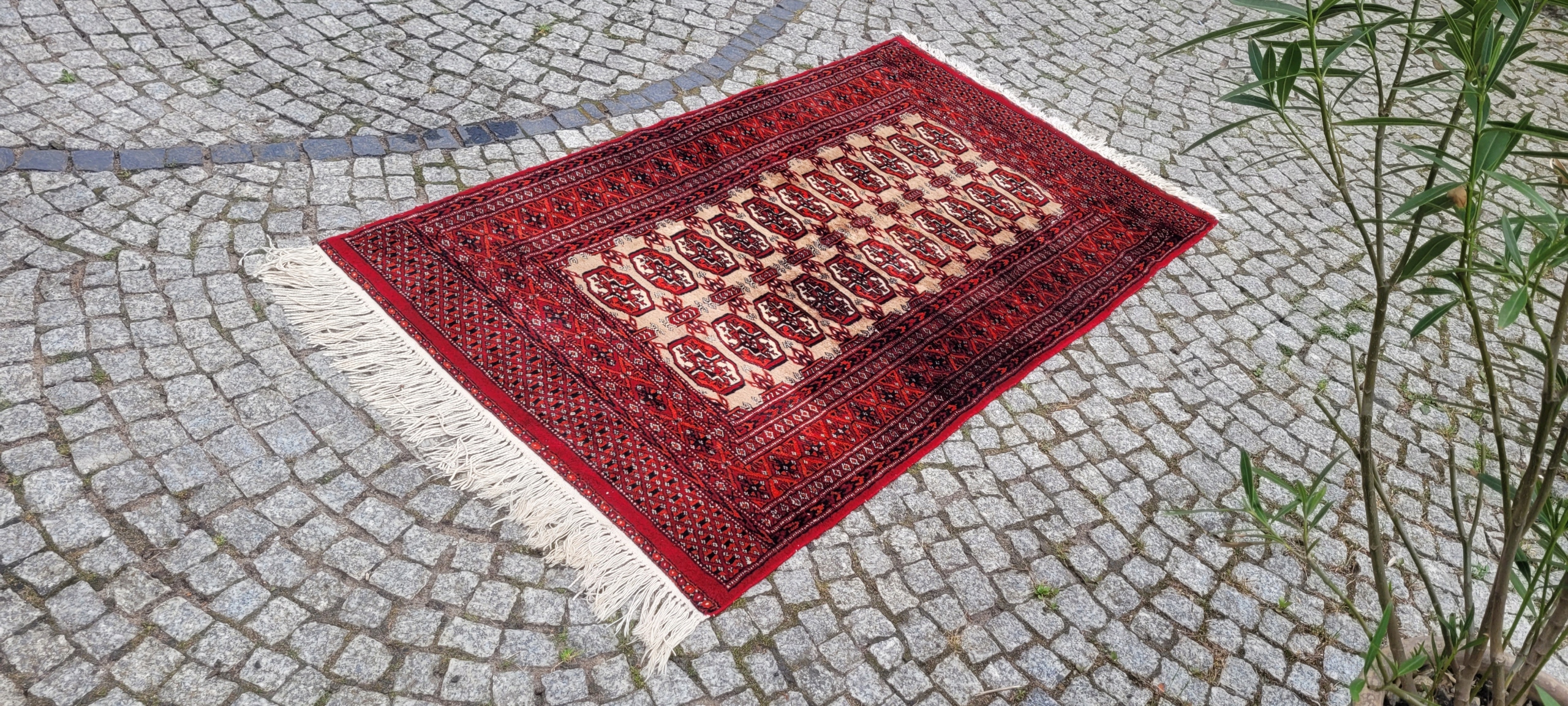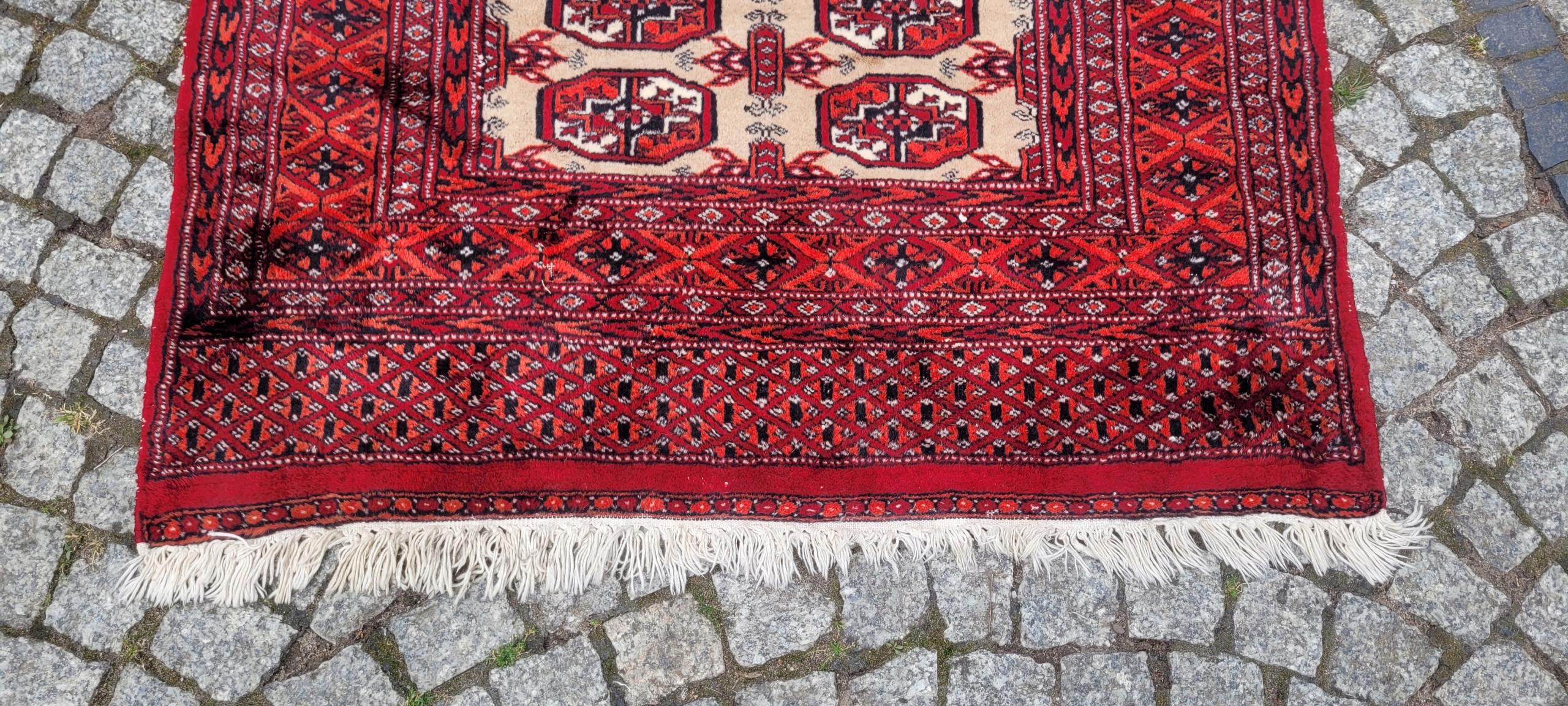 Східний бухарський килим. Виткана вручну з полірованої вовни найвищої якості. Характеризується компактним, приємним на дотик флісом і красивими кольорами та візерунками. У хорошому стані, видно на фото.