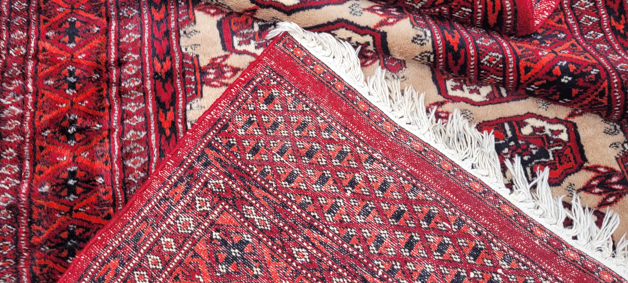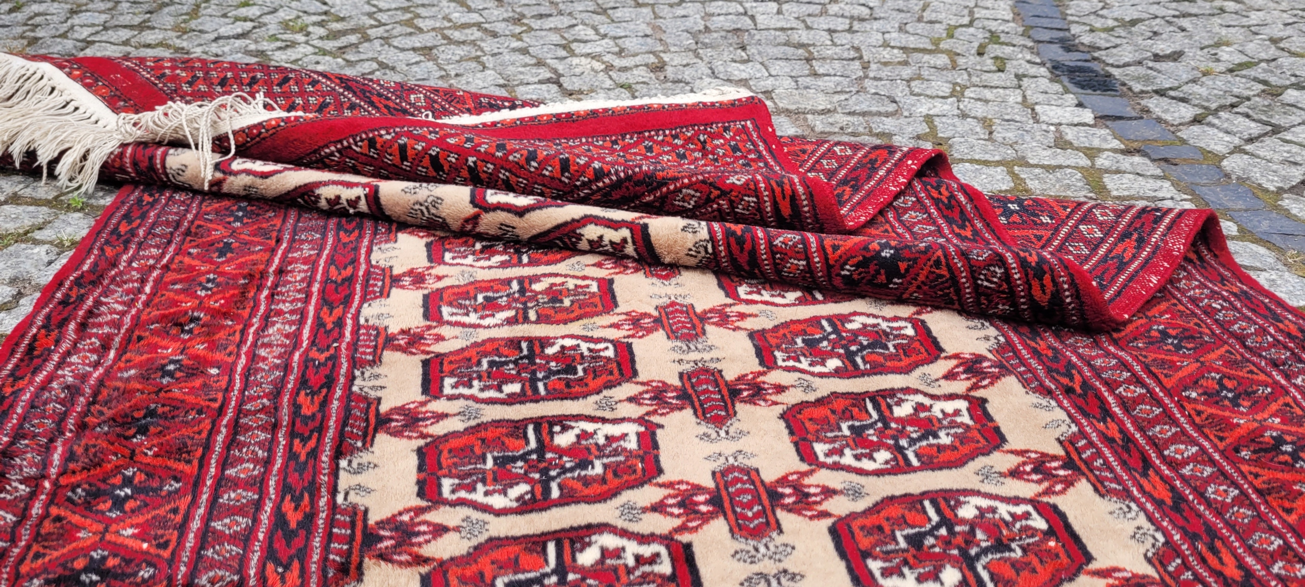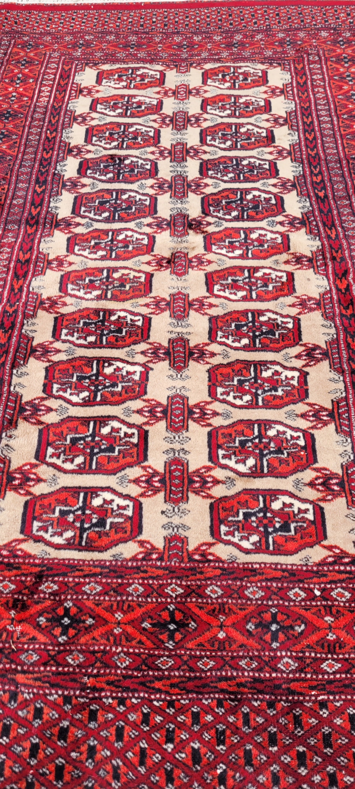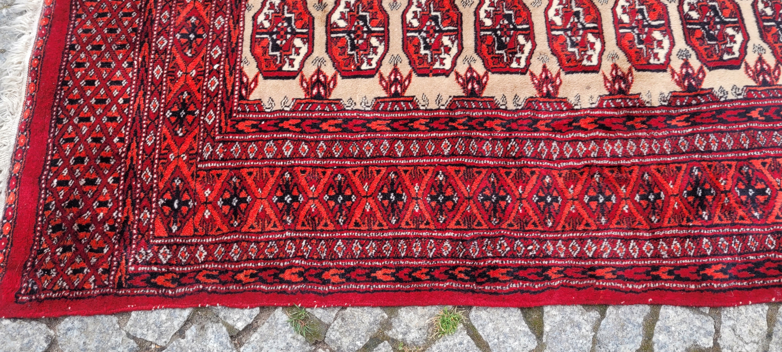 Східний бухарський килим. Виткана вручну з полірованої вовни найвищої якості. Характеризується компактним, приємним на дотик флісом і красивими кольорами та візерунками. У хорошому стані, видно на фото.