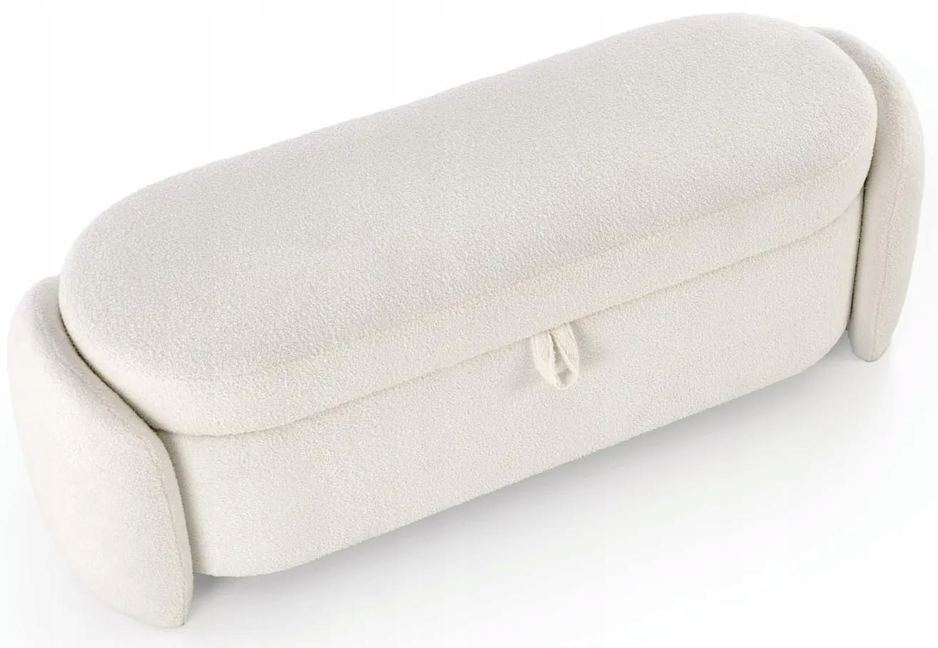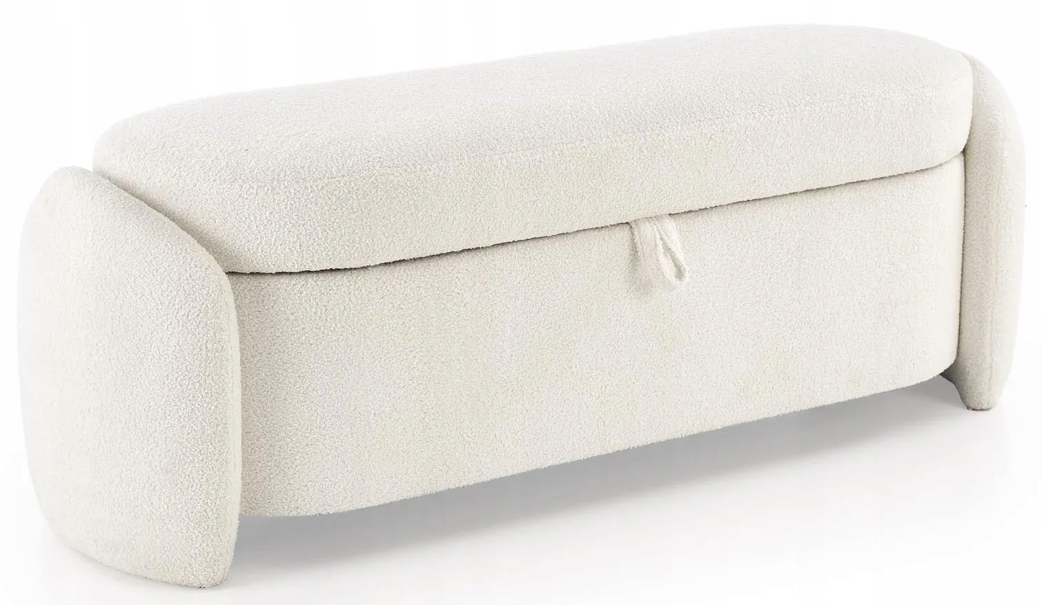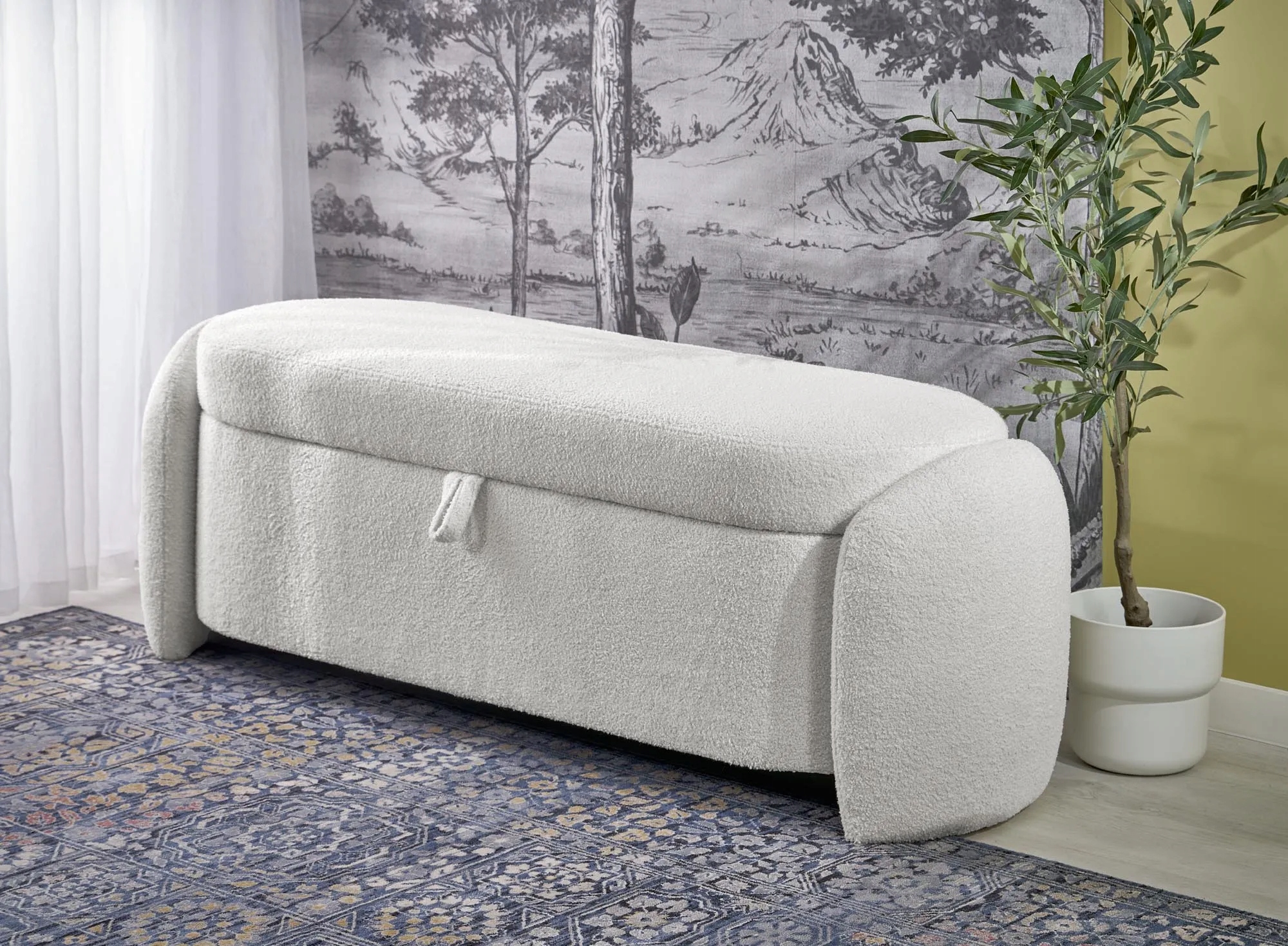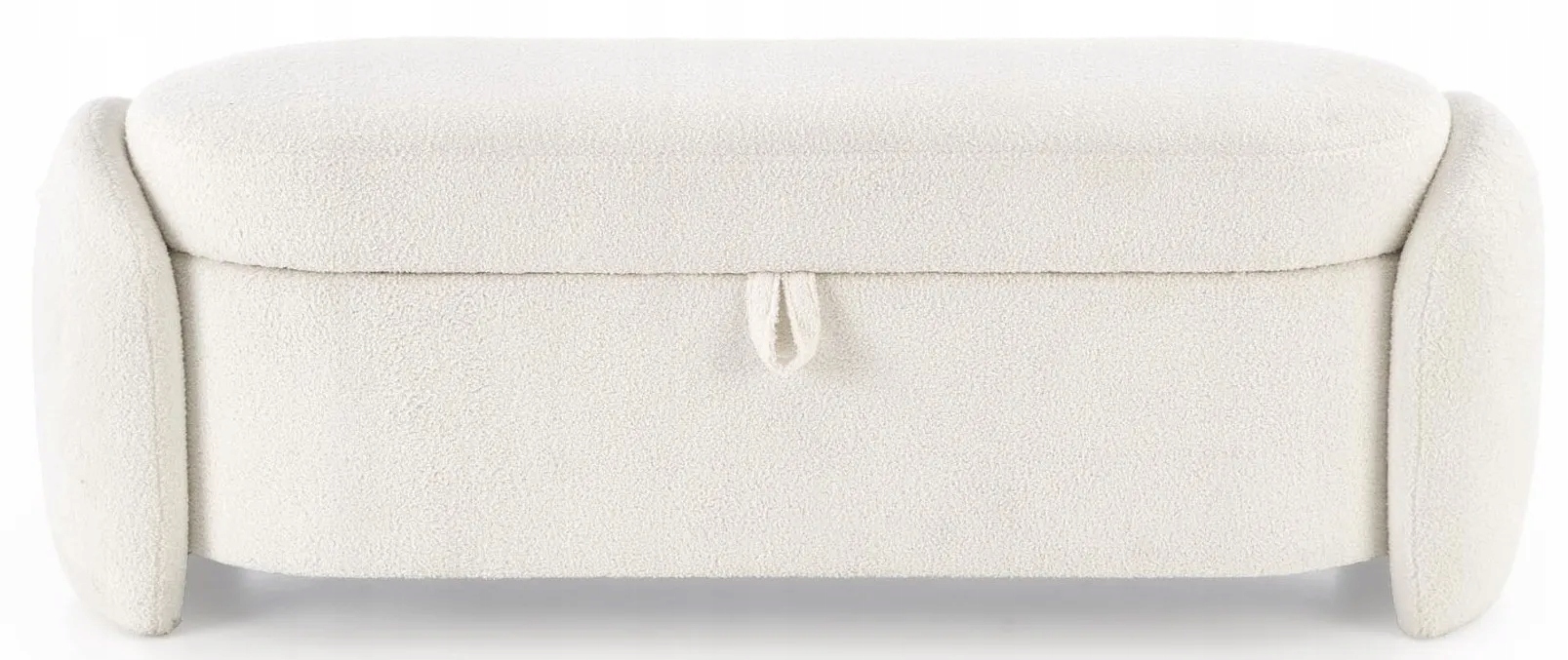 Лава FICARIA від Halmar у версії кремового кольору – це унікальне поєднання стилю та функціональності. Його оббивка з тканини букле має м'яку, приємну на дотик структуру, що додає інтер'єру затишку. Округла форма та тонкі лінії надають меблям сучасного характеру, а нейтральний кремовий відтінок дозволяє легко підібрати їх до різноманітних композицій. Під сидінням є практичний контейнер, де можна зберігати ковдри, подушки та інші дрібниці. Це ідеальний вибір для вітальні, спальні та холу, де важливі комфорт, елегантність і додатковий простір для зберігання.