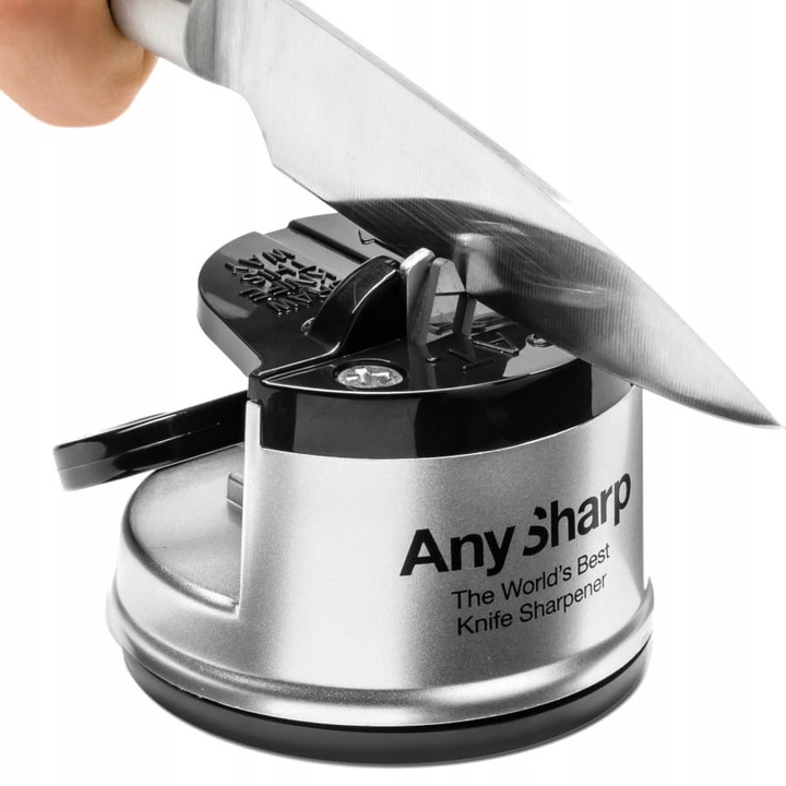Ефективність заточування доповнюється. Для точила AnySharp® є міцна стаціонарна опора завдяки гумовому присоску з важелем – PowerGrip®. Завдяки такій ефективній стабілізації заточувальних пластин процес заточування є більш точним і ефективним порівняно з точилами, які тримають іншою рукою.
