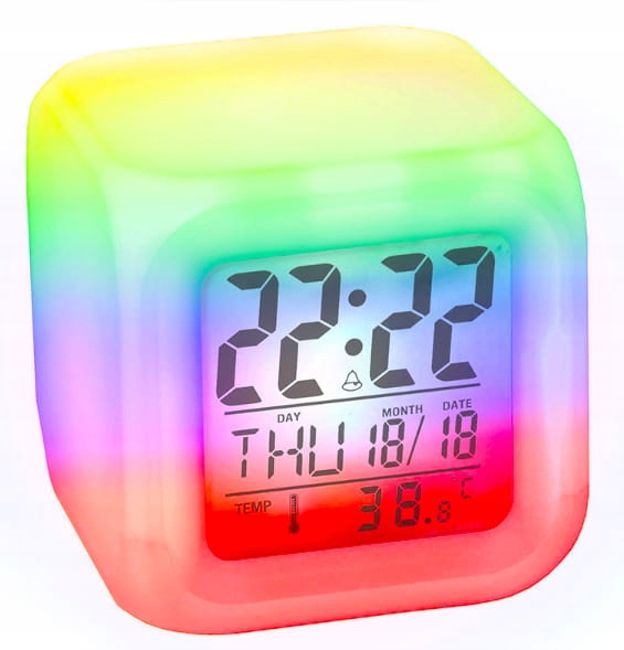 БУДИЛЬНИК ХАМЕЛЕОН ГОДИННИК ДИТЯЧИЙ ЗМІНЮЄ КОЛЬОРИ LCD ТЕРМОМЕТР СВІТЛИВИЙ