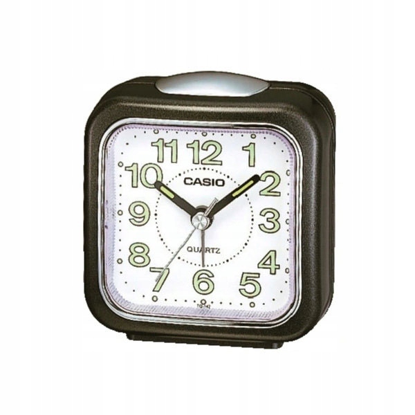 Класичний простий будильник CASIO TQ-142-1EF - підсвічування, необрит, пробудження звук електронний, чорний корпус, білий циферблат