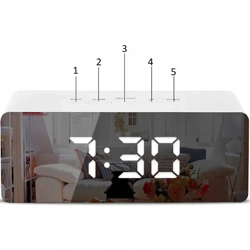 Естетичний цифровий годинник із дзеркальним покриттям стане ідеальним доповненням до спальні, офісу чи вітальні. Його цифри з підсвічуванням добре видно як вдень, так і вночі, функція будильника з відстрочкою працює добре щодня, а елегантний блискучий циферблат чудово виглядає в будь-якому інтер’єрі.