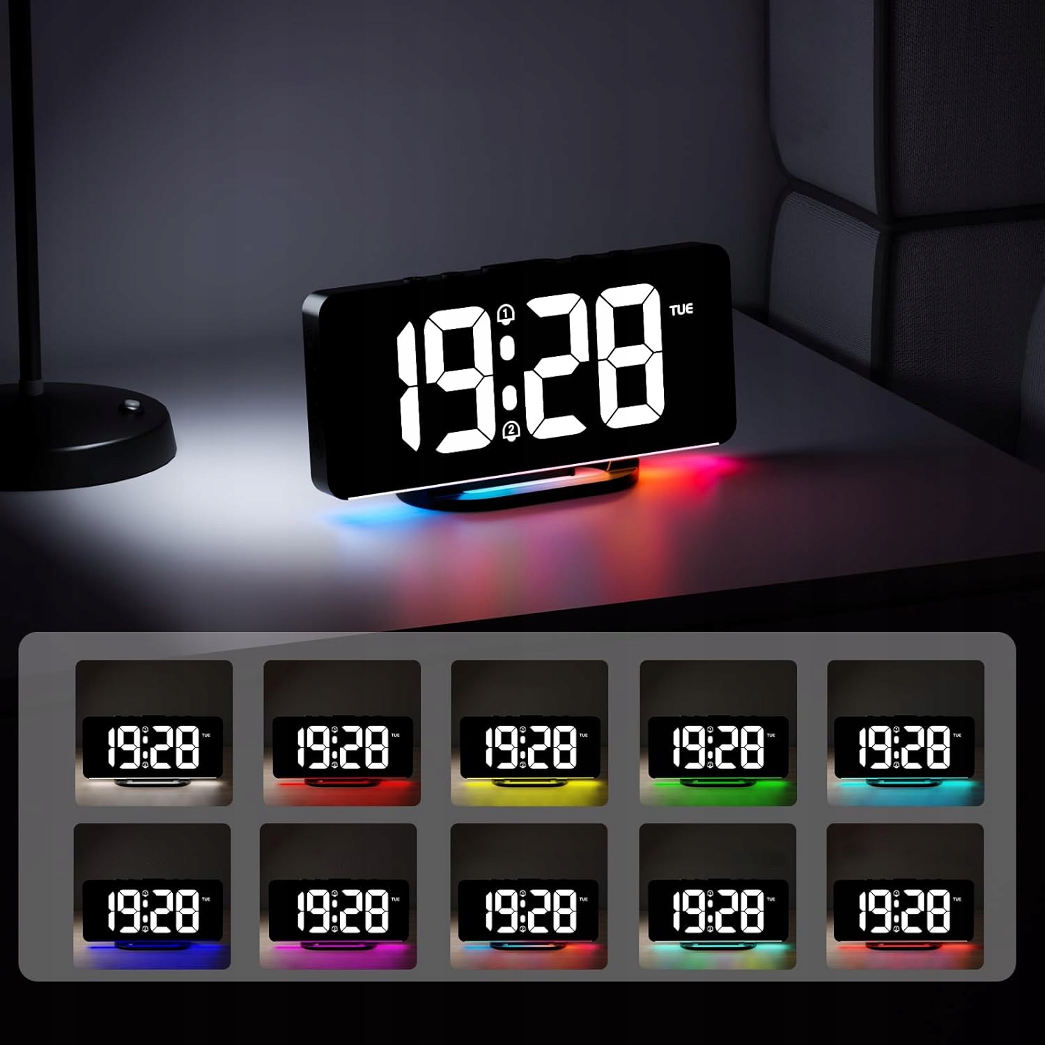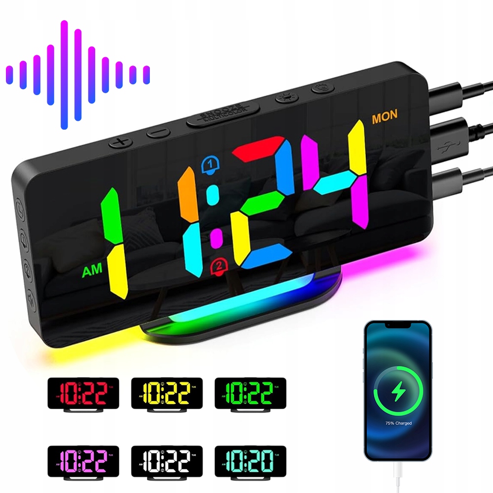 БУДИЛЬНИК ЕЛЕКТРОННИЙ LED RGB ГОДИННИК ГУЧНИЙ ЦИФРОВИЙ СТОЯЧИЙ СУЧАСНИЙ