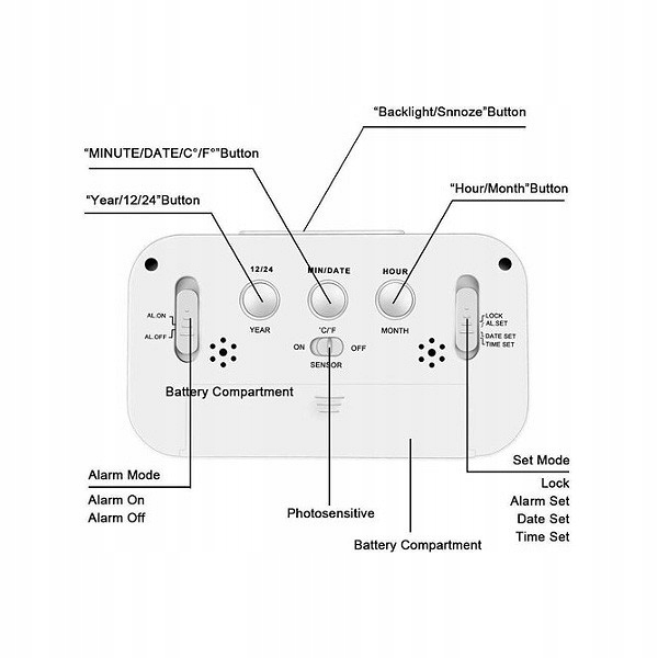 Цей пристрій допоможе вам прокинутися вранці та багато іншого. Також це ідеальне доповнення до будь-якого інтер'єру. Годинник з великим чітким дисплеєм і автоматичним РК-підсвічуванням. Оснащений термометром і будильником з функцією повтору. Годинник має велику функцію термометра з двома шкалами на вибір.