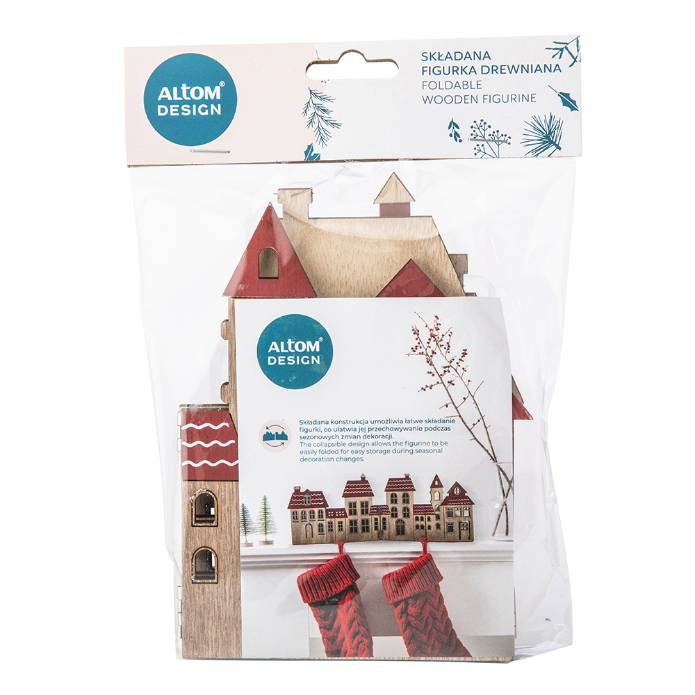 Будинки з будинками канікули Різдвяна прикраса, виготовлена з дерев’яної статуетки Altom Design 44 см