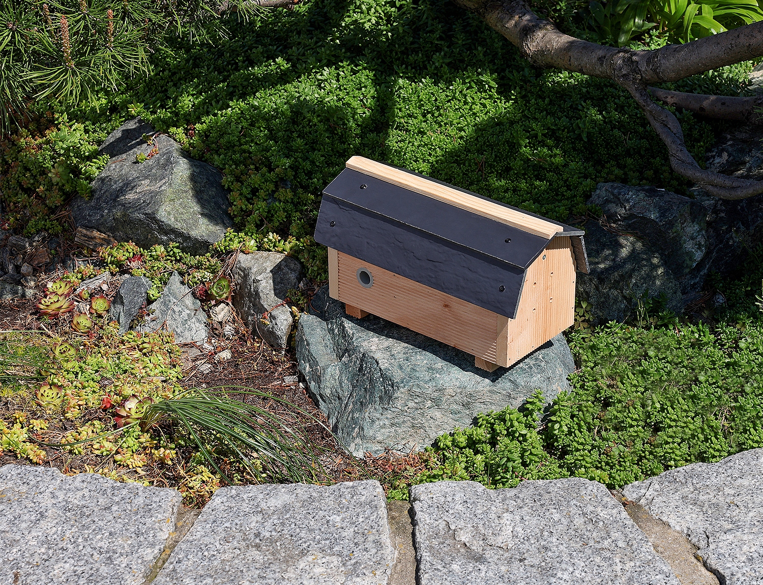 Дах цього будинку був покритий спеціальним водонепроникним структуралітом. Завдяки цьому джмелі будуть захищені від дощу та вологи, що дозволить їм тривалий час насолоджуватися сухим та затишним інтер'єром. Вам не потрібно хвилюватися про вологі будинки чи пошкодження, спричинені поганою погодою!