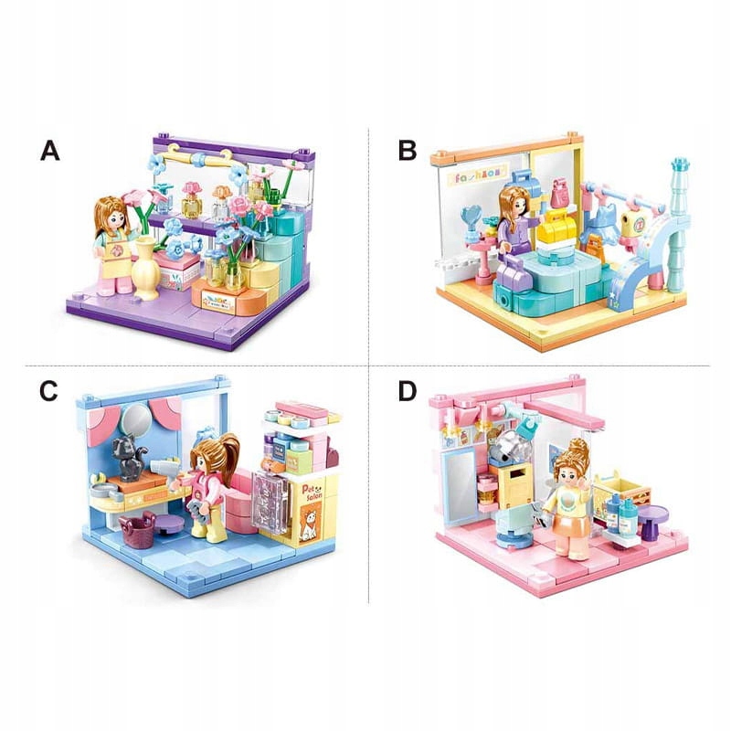 Кімнати можна з’єднати одна з одною для створення комплексних квартир відповідно до ваших уподобань чи інтересів. Ви можете з'єднати їх горизонтально або вертикально, створюючи ігровий інтер'єр своєї мрії! У наборі для кожної кімнати є статуетка, тематично відповідна інтер'єру.