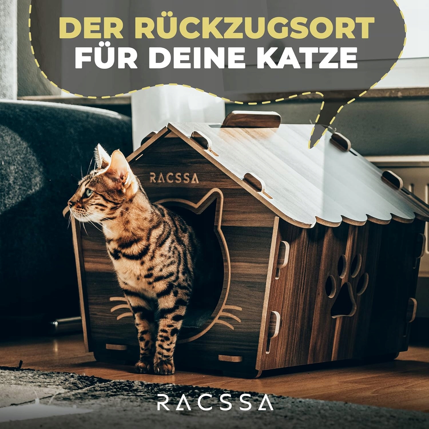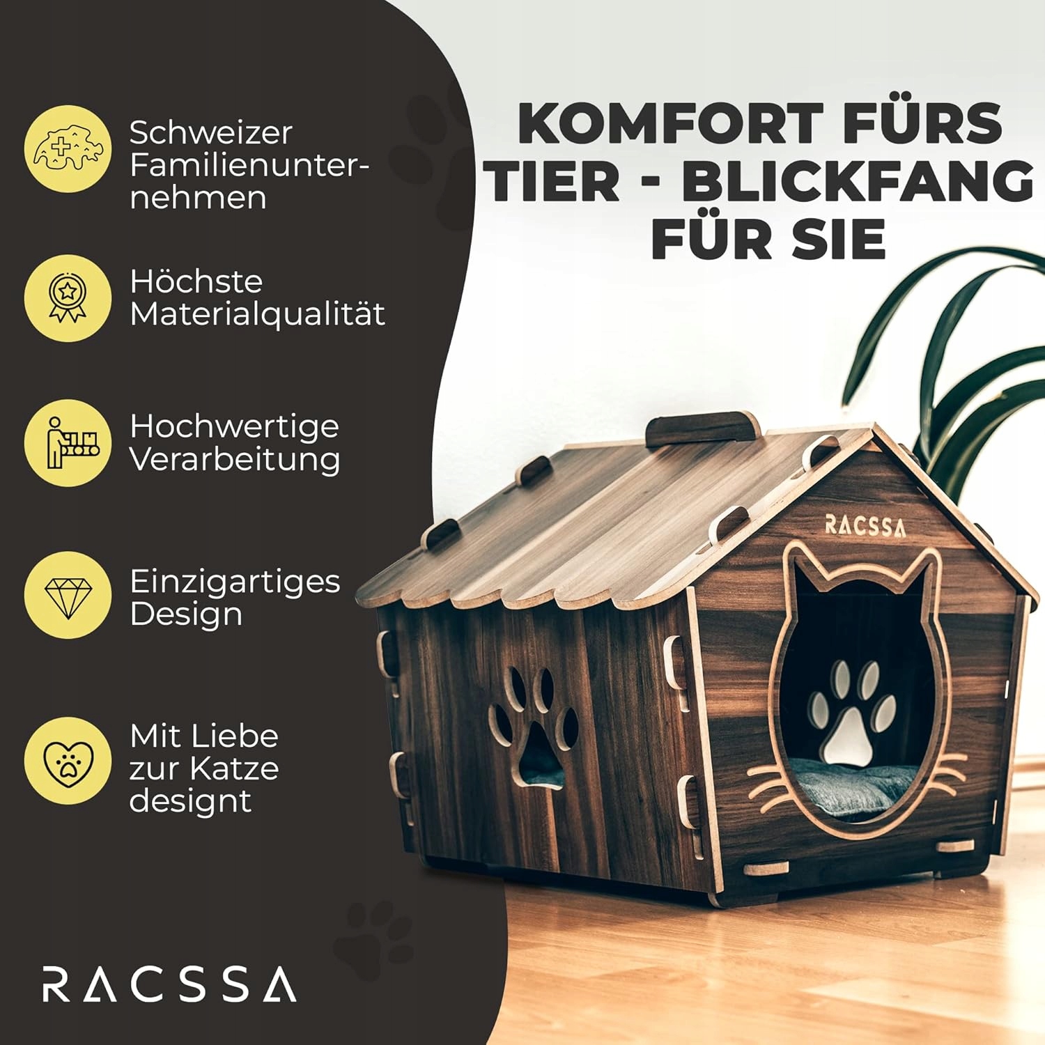 Котяча печера RACSA | Котячий будиночок для домашнього використання [портативний] Котячий будиночок Дерев'яний котячий будиночок з подушкою Outdoor cat house - справжній для вашої кішки