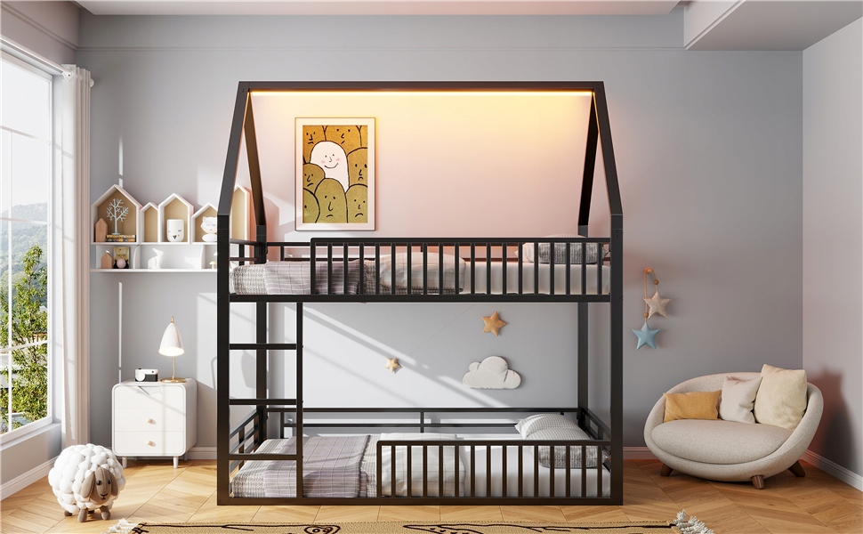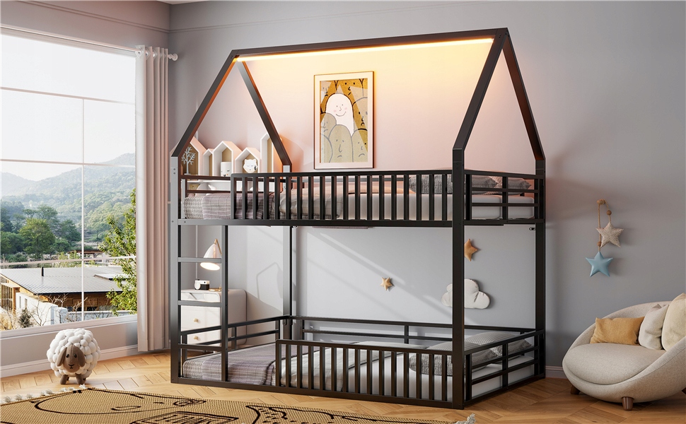 - Це двоярусне ліжко створено для вас. Рамка з будинком дозволяє створити власний приватний простір. З цим ліжком у вас гарантія глибокого сну. Низька конструкція двоярусного ліжка полегшує в'їзд та вихід. Виготовлений з високоякісної сталі, ліжко довговічне і не буде місіонерським навіть після багатьох років використання. Не соромтеся - це ідеальний вибір для вас! Це двоярусне ліжко оснащене світлодіодним освітленням, яке забезпечить вам барвисте нічне життя.
