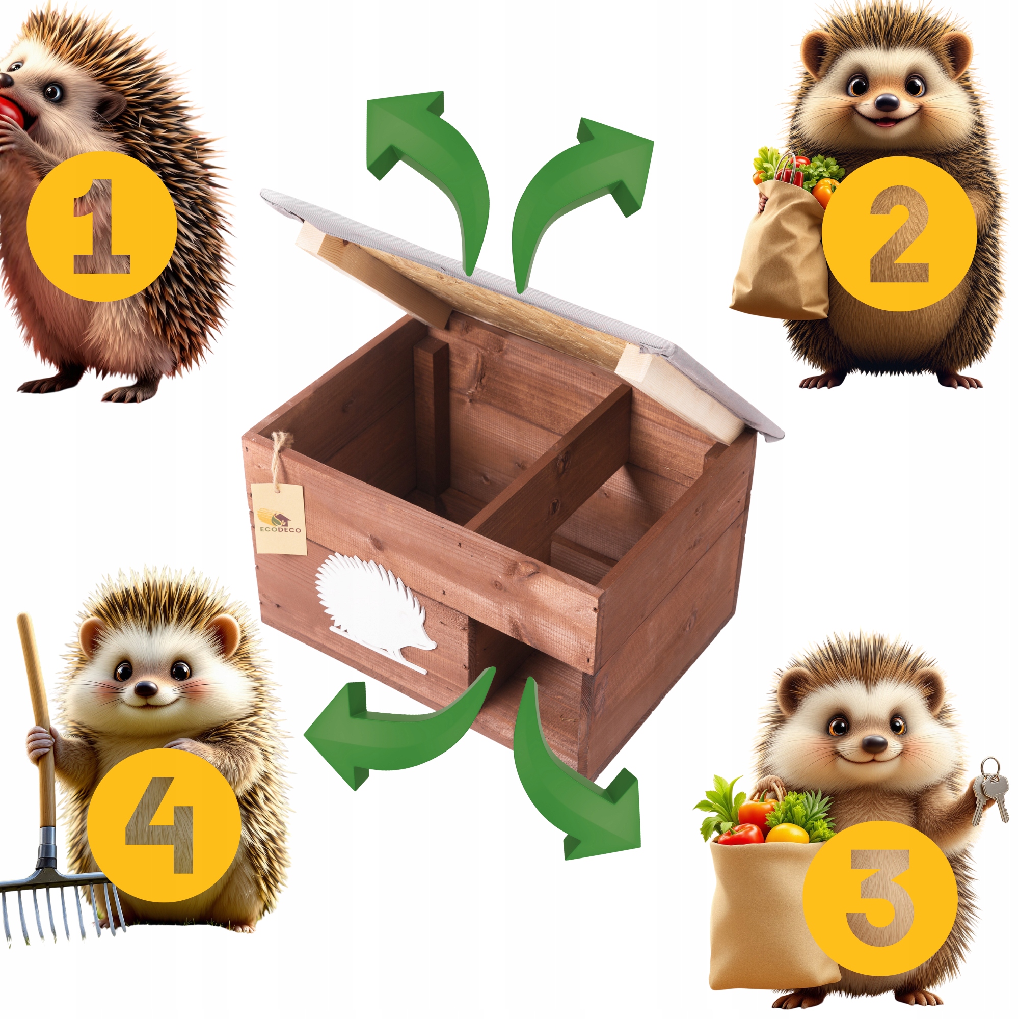 ✅ Необхідність сплячки: Їжаки захищені в Польщі та повинні безпечно пережити зимовий період у сплячці. Надання їм надійного ізольованого будинку є надзвичайно важливим. Таке укриття захищає їх від морозу, вологи та хижаків (наприклад, лисиць і куниць) у той час, коли вони найбільш беззахисні.