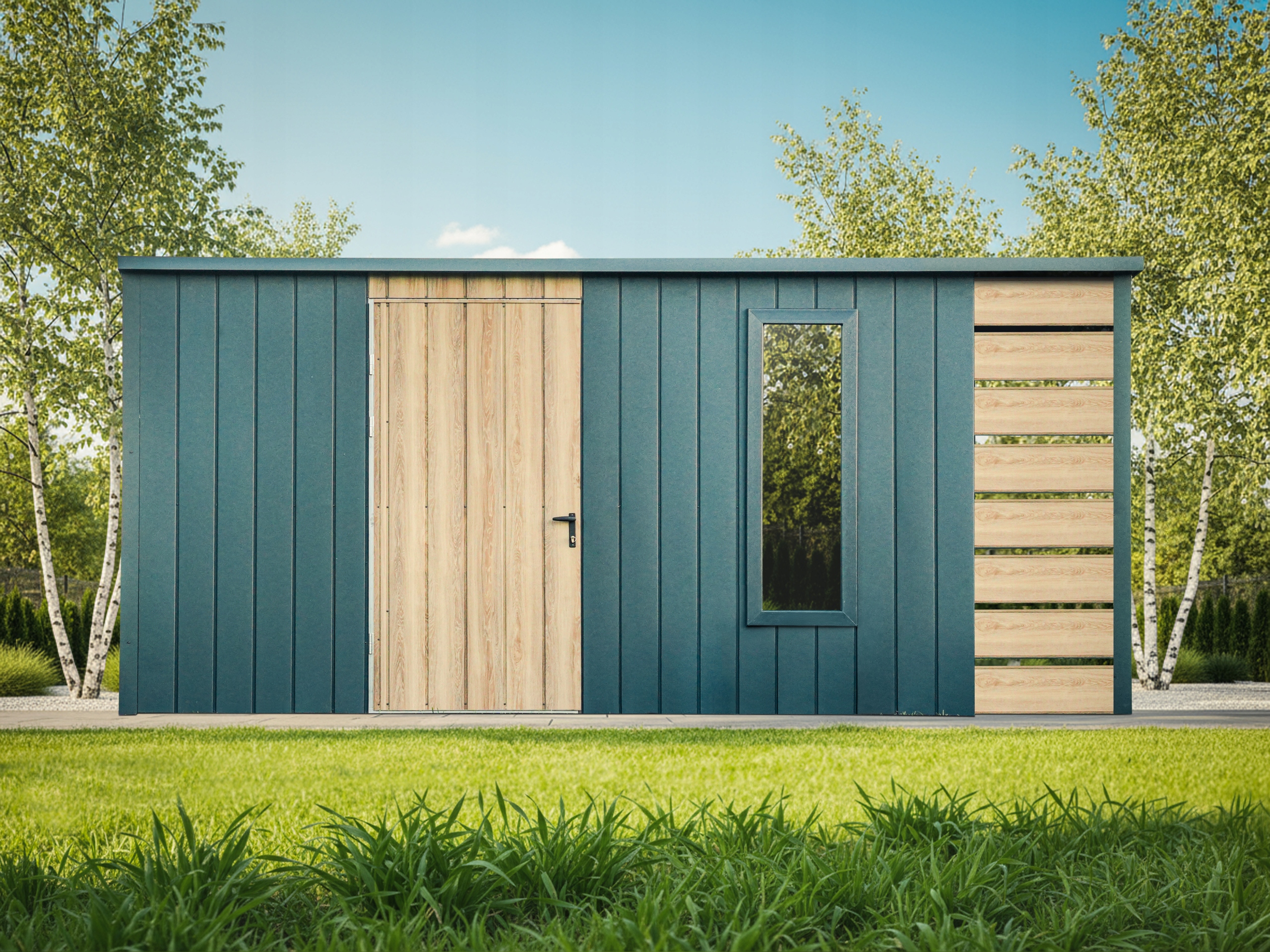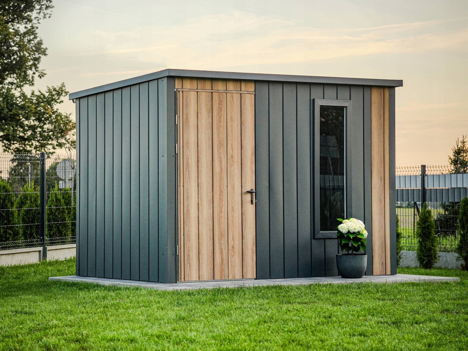 Завдяки сучасному вигляду та нейтральним кольорам будинок для інструментів ідеально вписується як у традиційний, так і в сучасний сад. Це не тільки функціональне, але й декоративне рішення.