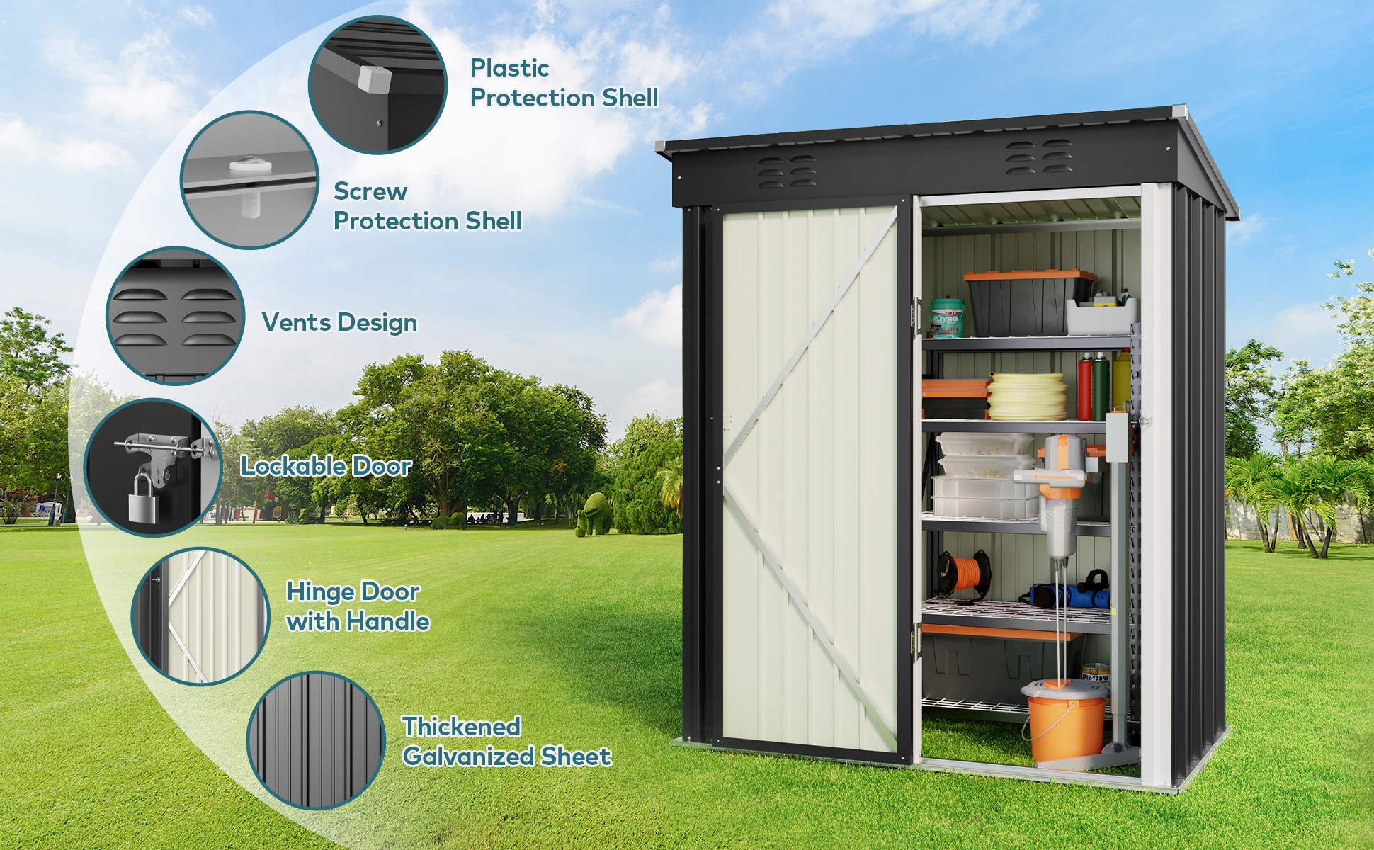 Зважаючи на ці деталі, наш садовий сарай пропонує не лише просторе рішення для зберігання, але й підвищений захист, вентиляцію, безпеку та довговічність. Він був розроблений для задоволення вимог зовнішніх середовищ, забезпечуючи при цьому комфорт та спокій у всіх потребах для зберігання.