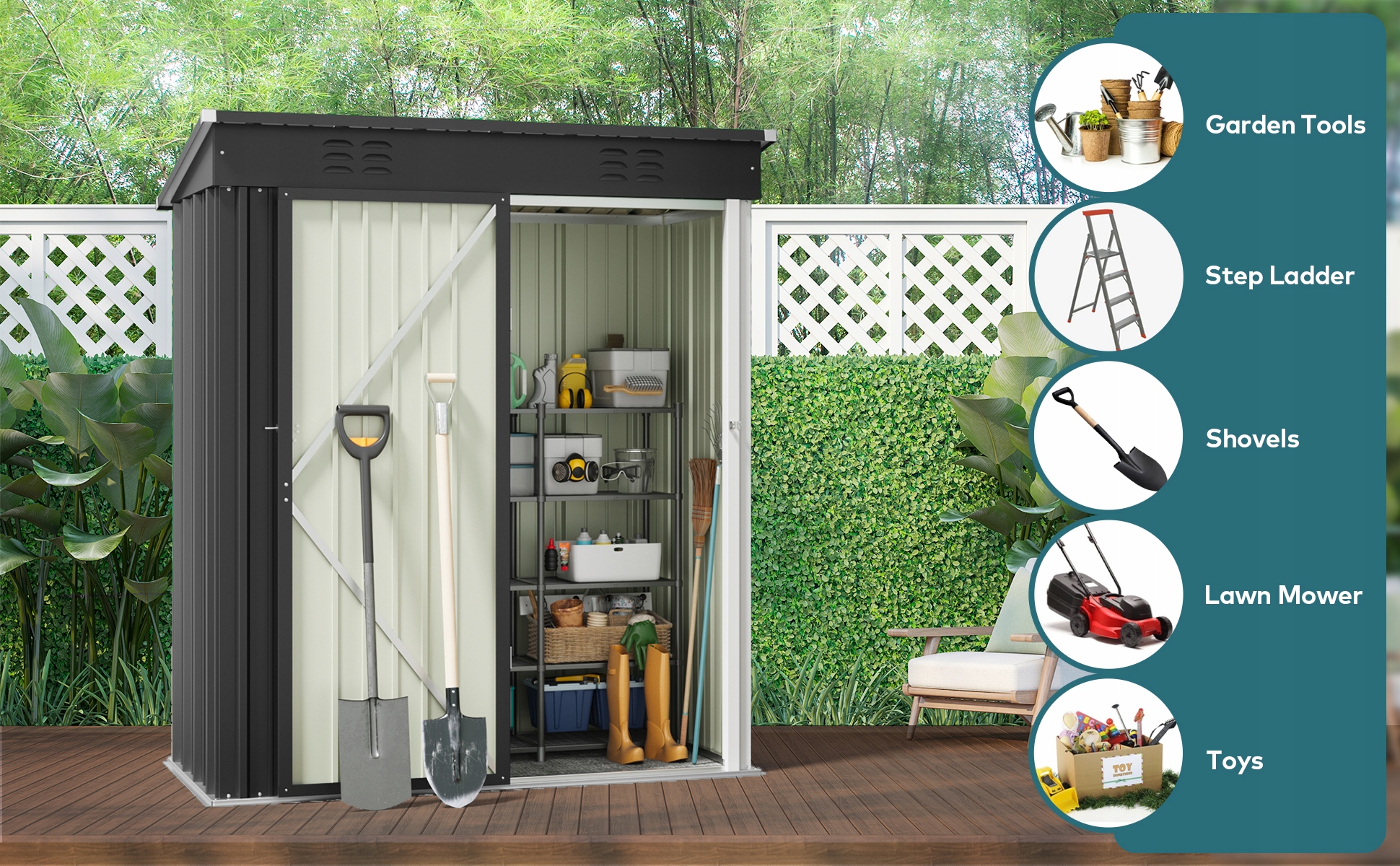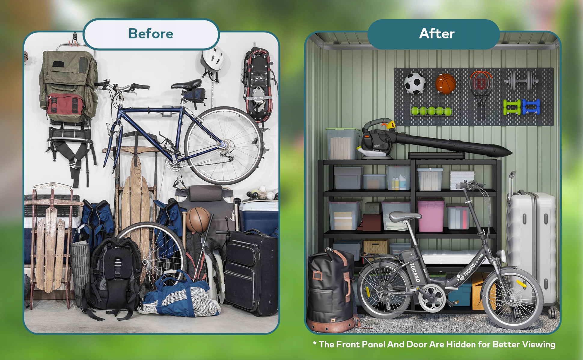 Зовнішній металевий інструментальний будинок допомагає приховати садові відходи та велике обладнання та уникнути безладу у дворі, у підвалі чи гаражі.