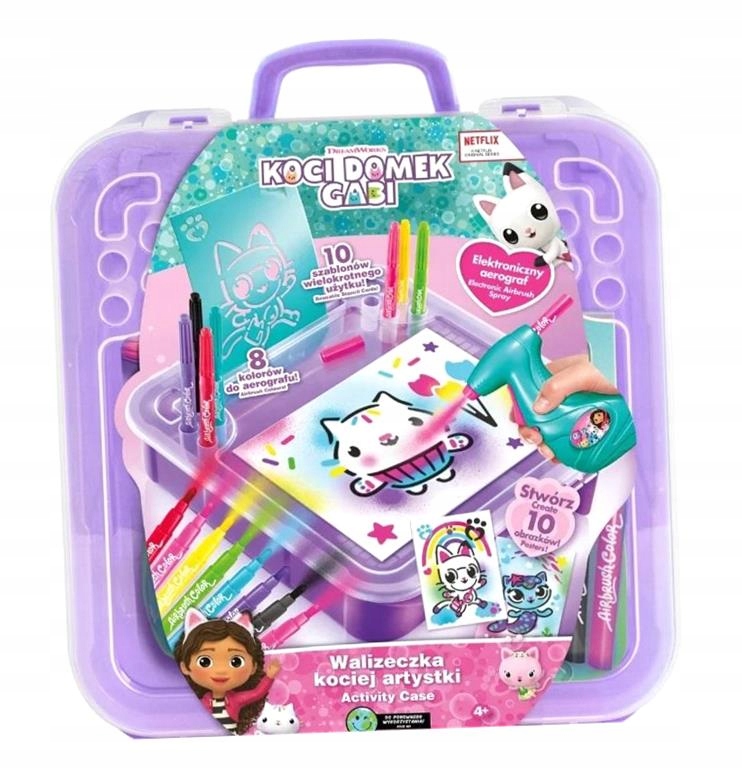 Валіза кота-художника з лінії Gabi Cat House - чудова ідея для кожного маленького художника. Валіза зручна і зручна. Містить усе необхідне для створення чудових дизайнів за допомогою аерографа: маркери, трафарети, наклейки.