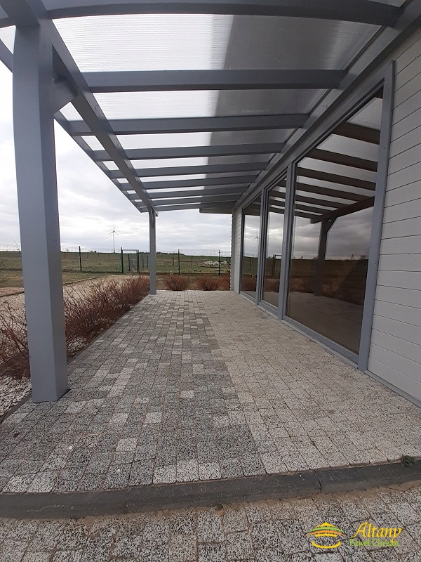 За бажанням замовника ми можемо виготовити варіант будинку з терасою, як показано на фото нижче.