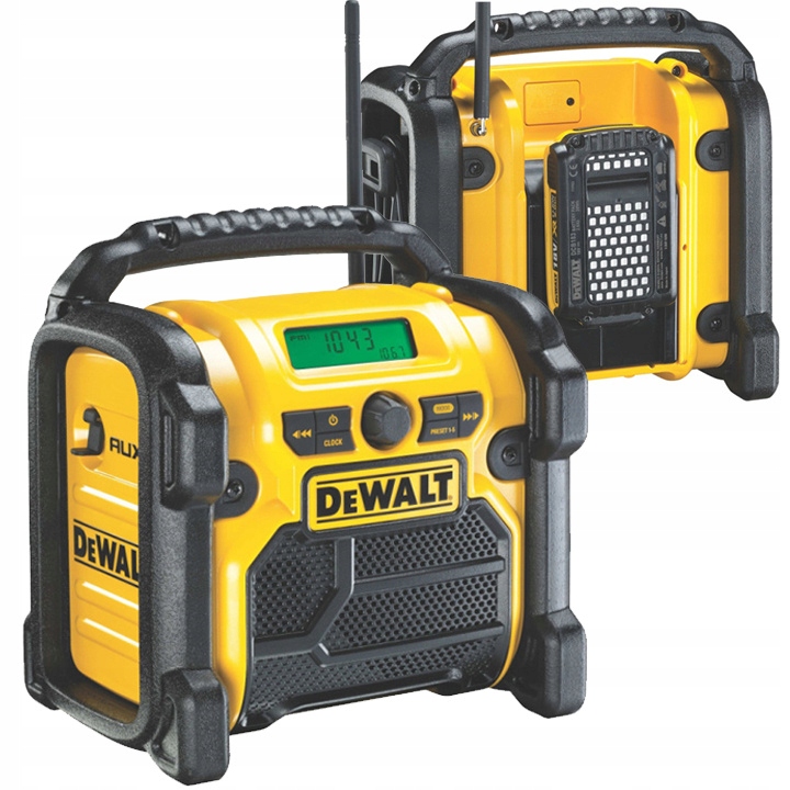 - Багатофункціональне використання: Радіо можна живити від різних типів літій-іонних акумуляторів DeWalt, що збільшує його універсальність на будівельному майданчику .