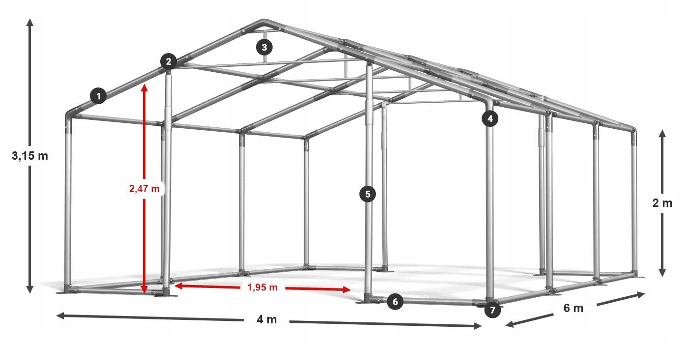 1 - Структурні труби близько 50 мм 2 - конструкторські з'єднувачі близько 54 мм 3 - армовані конструкція даху 4 підкріплення 6 - - 6 7 - збільшено футів fi 14 см