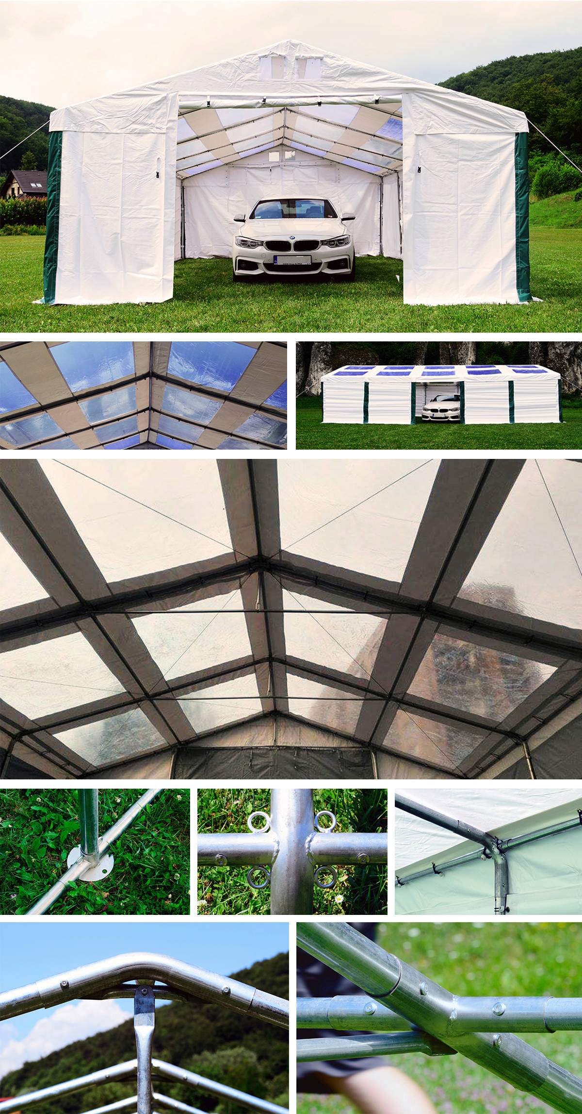 Структура характеризується суцільною рамкою , виготовленою з оцинкованих труб діаметром близько 50 мм. Рамка проста в встановленні. Завдяки цьому, крім швидкого розгортання, намет можна легко переміщувати в будь -яке місце .