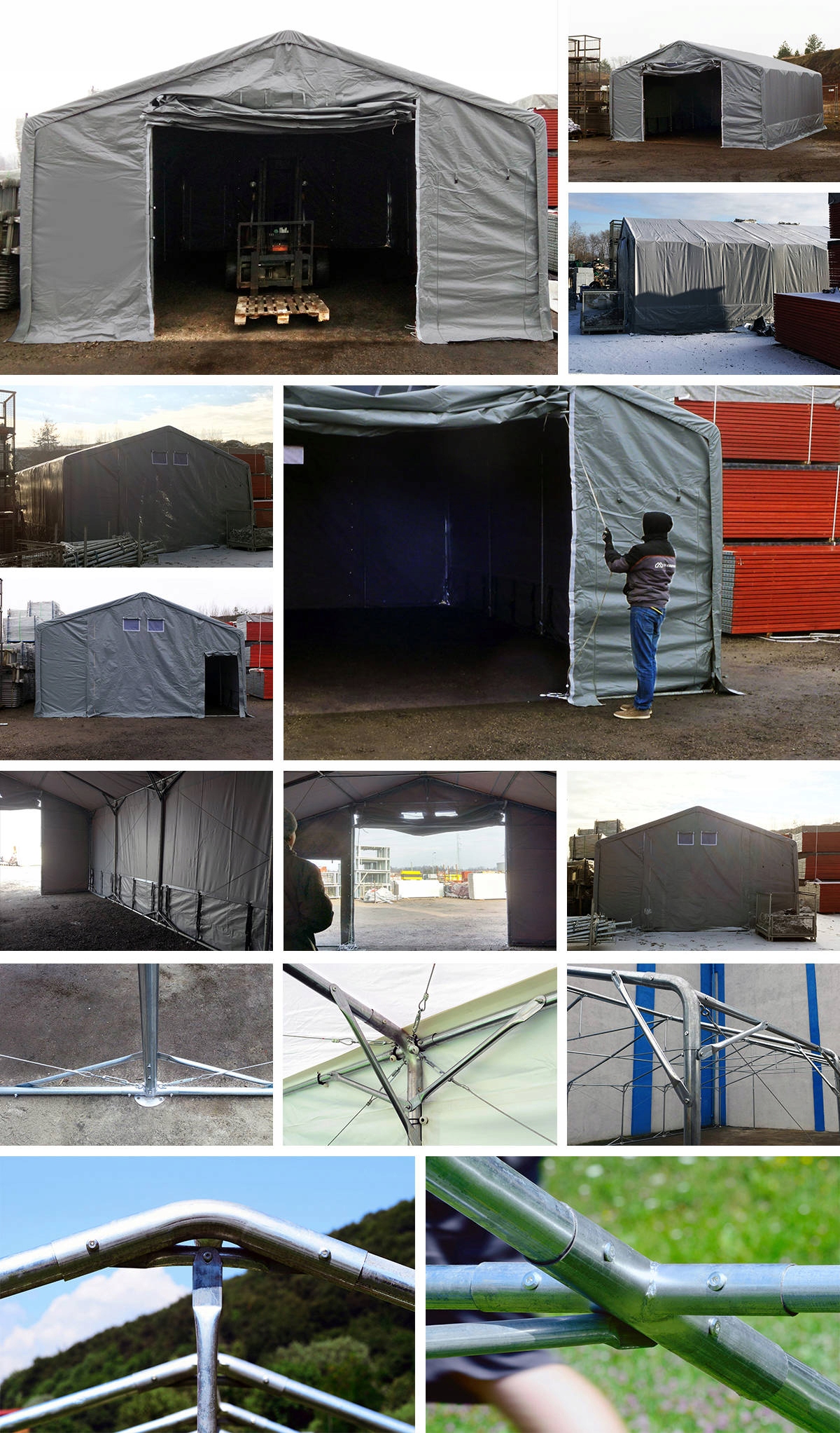 Чохол ідеально підходить для зберігання різних видів матеріалів. Його можна використовувати як намет для зберігання, промисловий намет, намет для майстерні, намет для маляра, намет для тераси, військовий намет, намет для гаража, намет для автостоянки або намет для автомийки. Крім того, його можна використовувати як торговельний намет, який може стати пересувною точкою продажу.