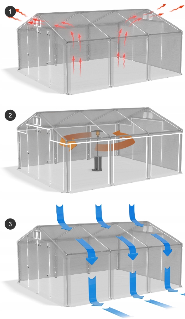 З обох сторін даху є подвійні вентиляційні отвори з ролетами. Це забезпечує правильну циркуляцію повітря. Завдяки цьому всередині намету не створюється ефект сауни і вода не повинна конденсуватися на стінках.