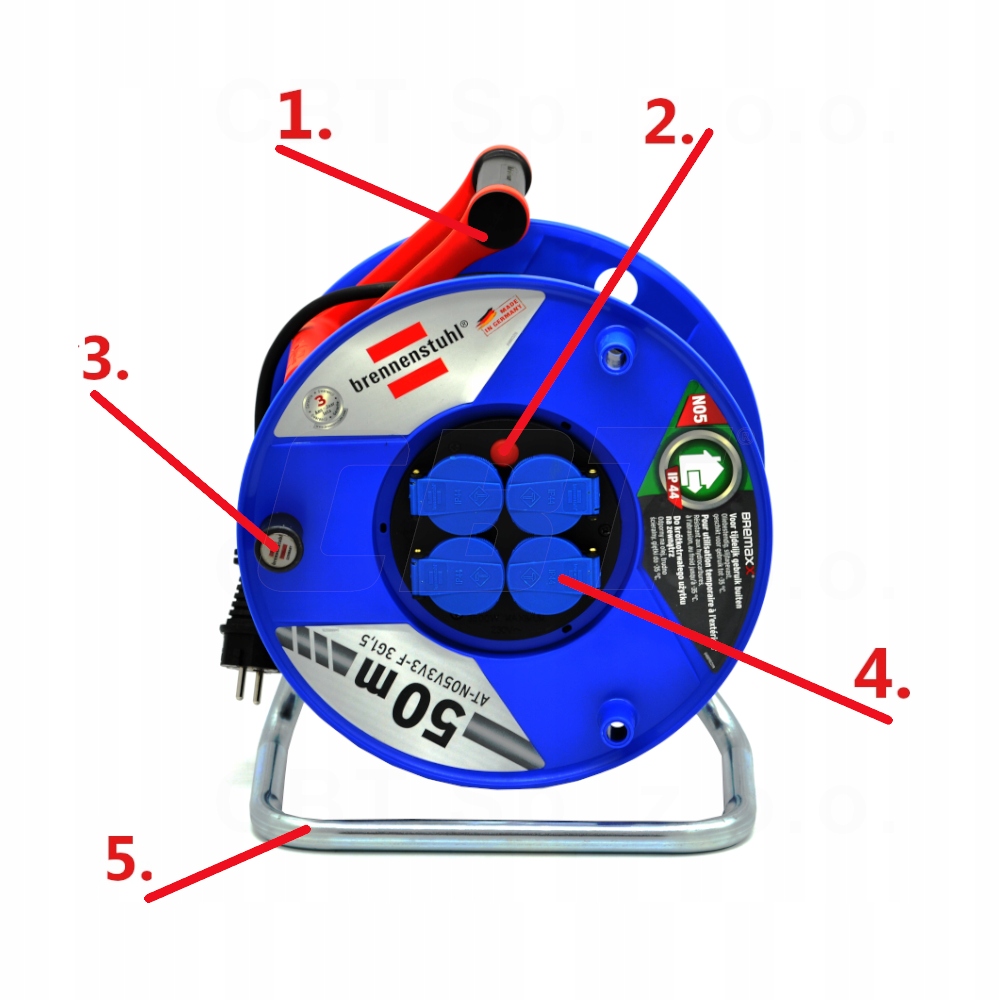 2. Захист від перегріву. Індикатор попередження про перегрів і перевантаження.3. Кручена ручка дозволяє зручно та швидко змотувати кабель