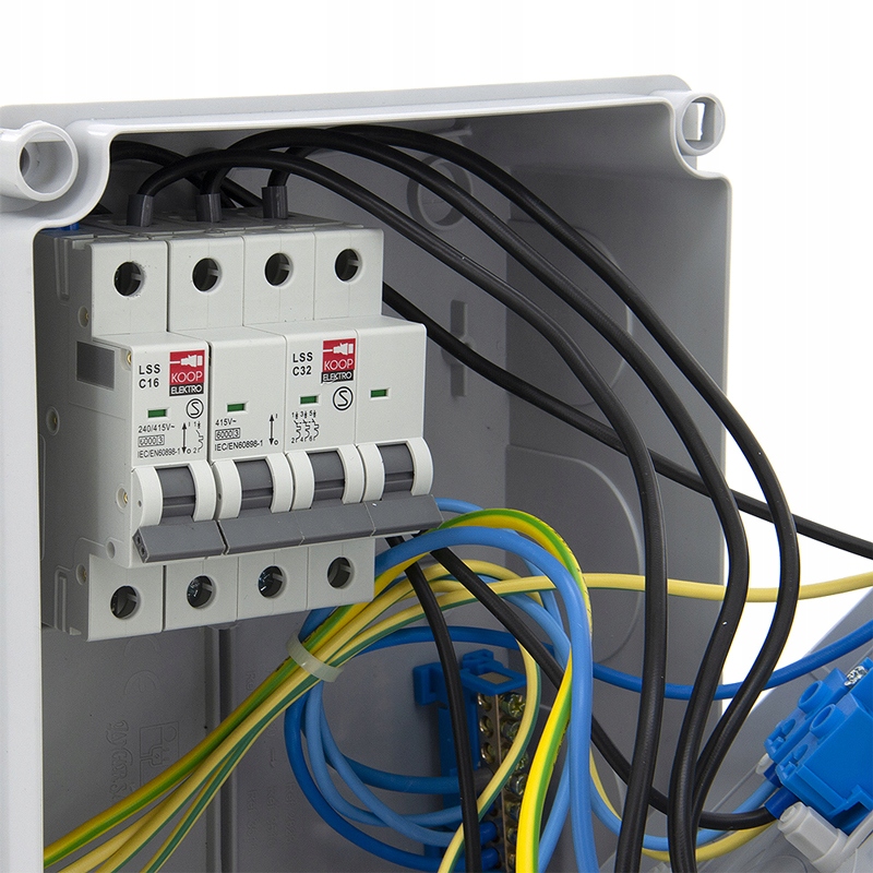 ✅ 3 x Один -фазовий суцільний розетка з Bolc 16A 230V IP54 повністю провідний з LGY 2,5 мм2 та захищеним C16 1p ,