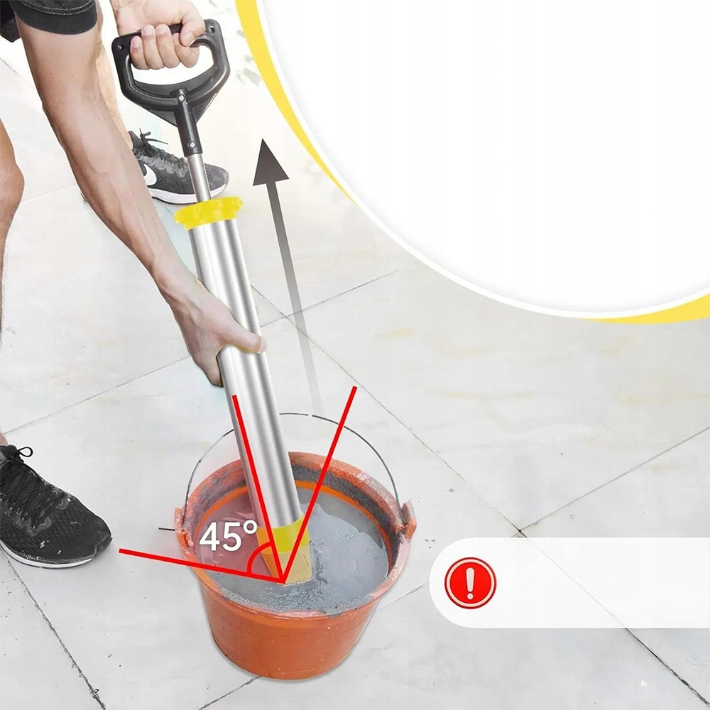 - Оптимізований кут нахилу 45° дозволяє ефективніше розпилювати матеріал, мінімізуючи втому рук і забезпечуючи рівномірність розподіл затирки/епоксидної смоли на великих поверхнях (наприклад, стінах, підлозі).
