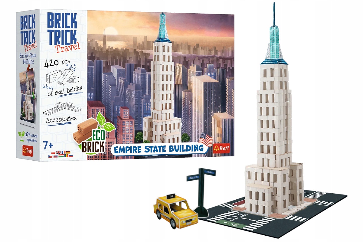 Емпайр-стейт-білдінг - хмарочос Нью-Йорка, один з найважливіших символів цього міста і навіть усієї країни - США. Brick Trick Travel — це ще одна версія цегляних блоків. Знайомтеся з популярними і улюбленими пам'ятниками в ЕКО-версіях і, головне, створюйте їх з нуля. Граючи з продуктами Brick Trick Travel, ви дізнаєтеся багато нового про ці будівлі. Відтепер пам’ятники з усього світу можна знайти на вашій полиці!