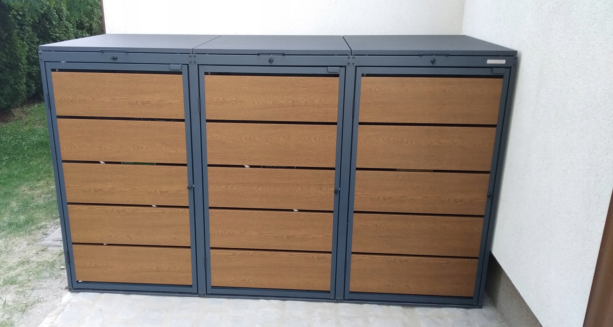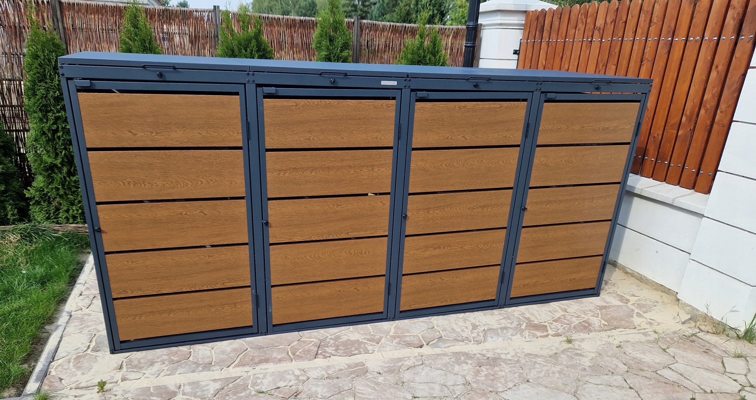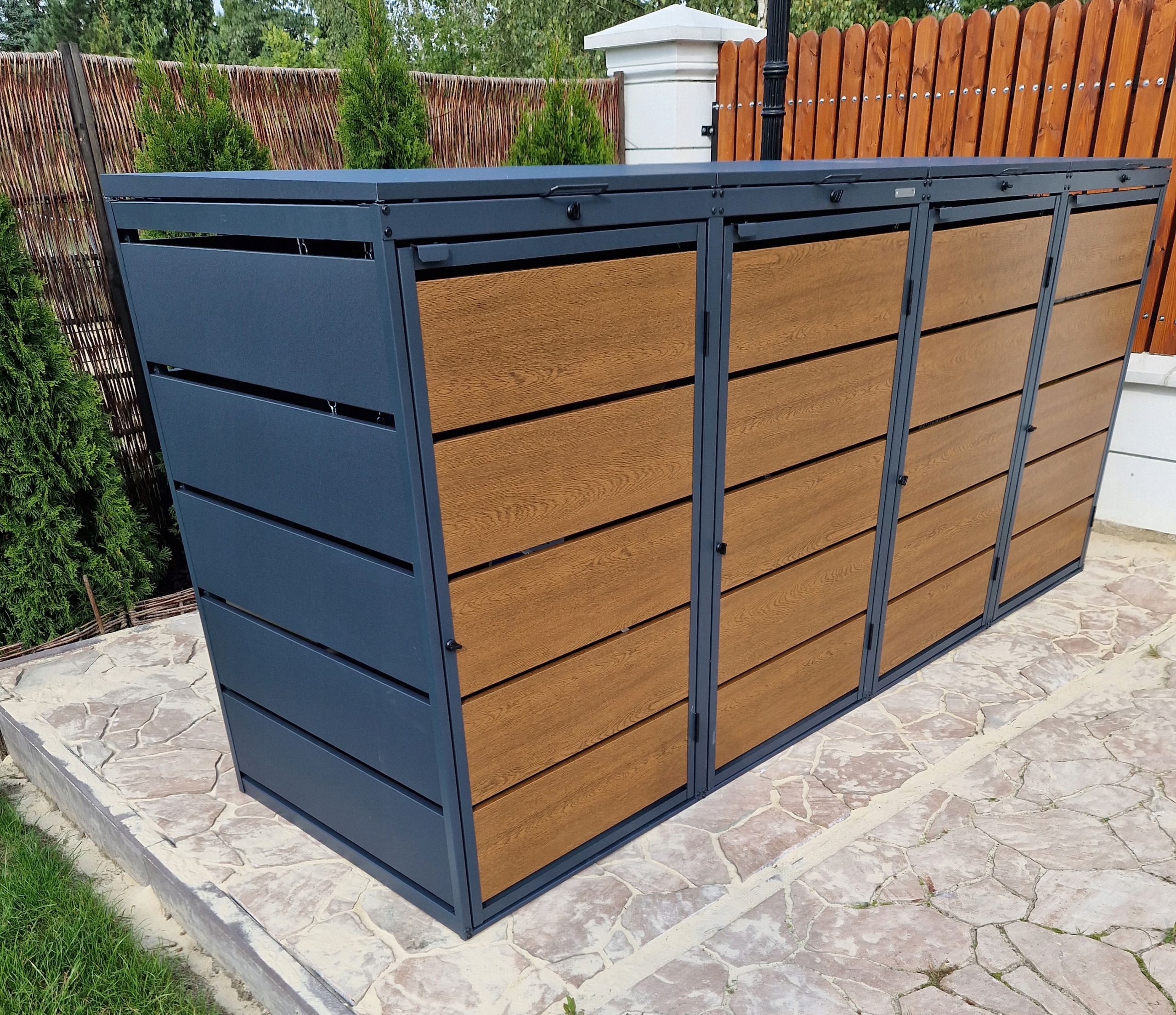 Пропозиція стосується будівлі для 4 кошиків 240 л антрациту з дверима золотистого дуба.
