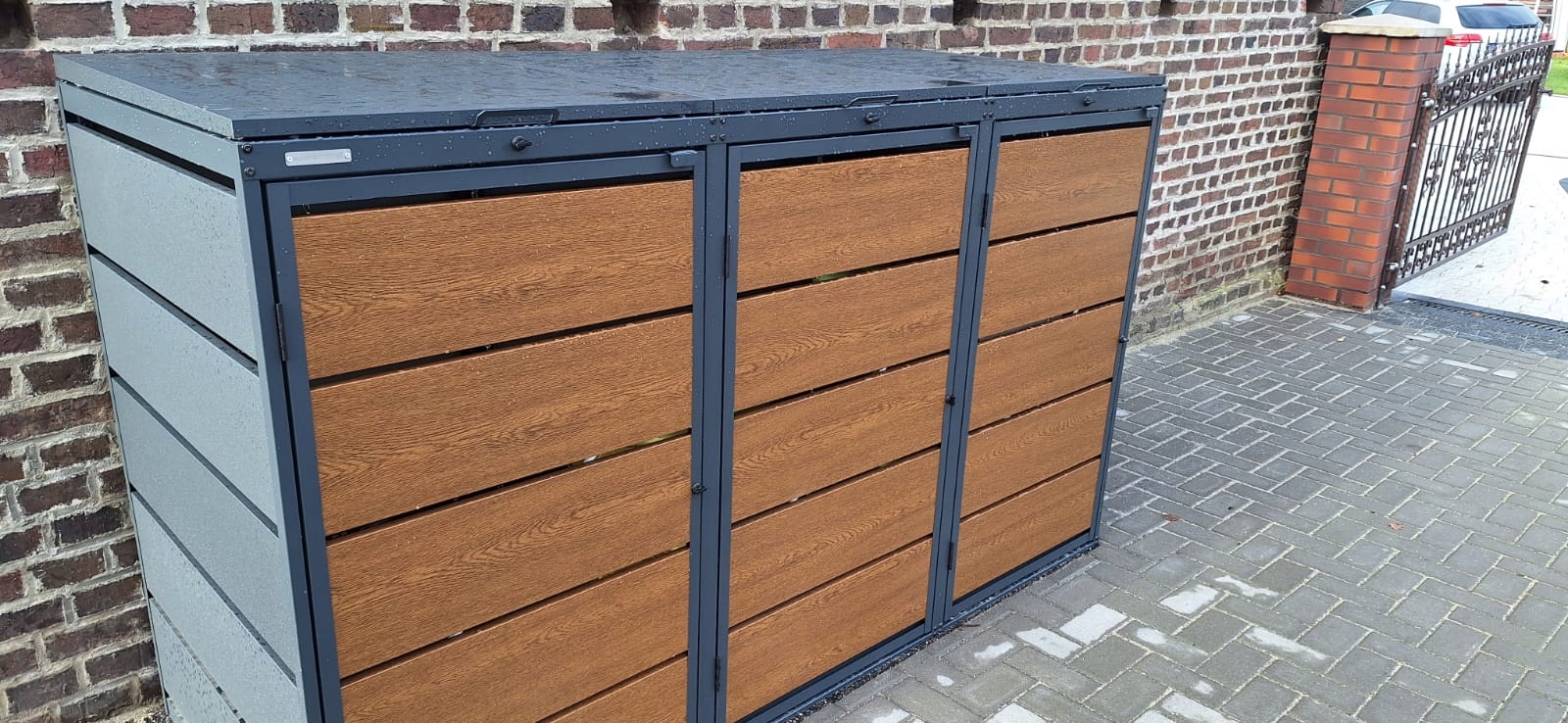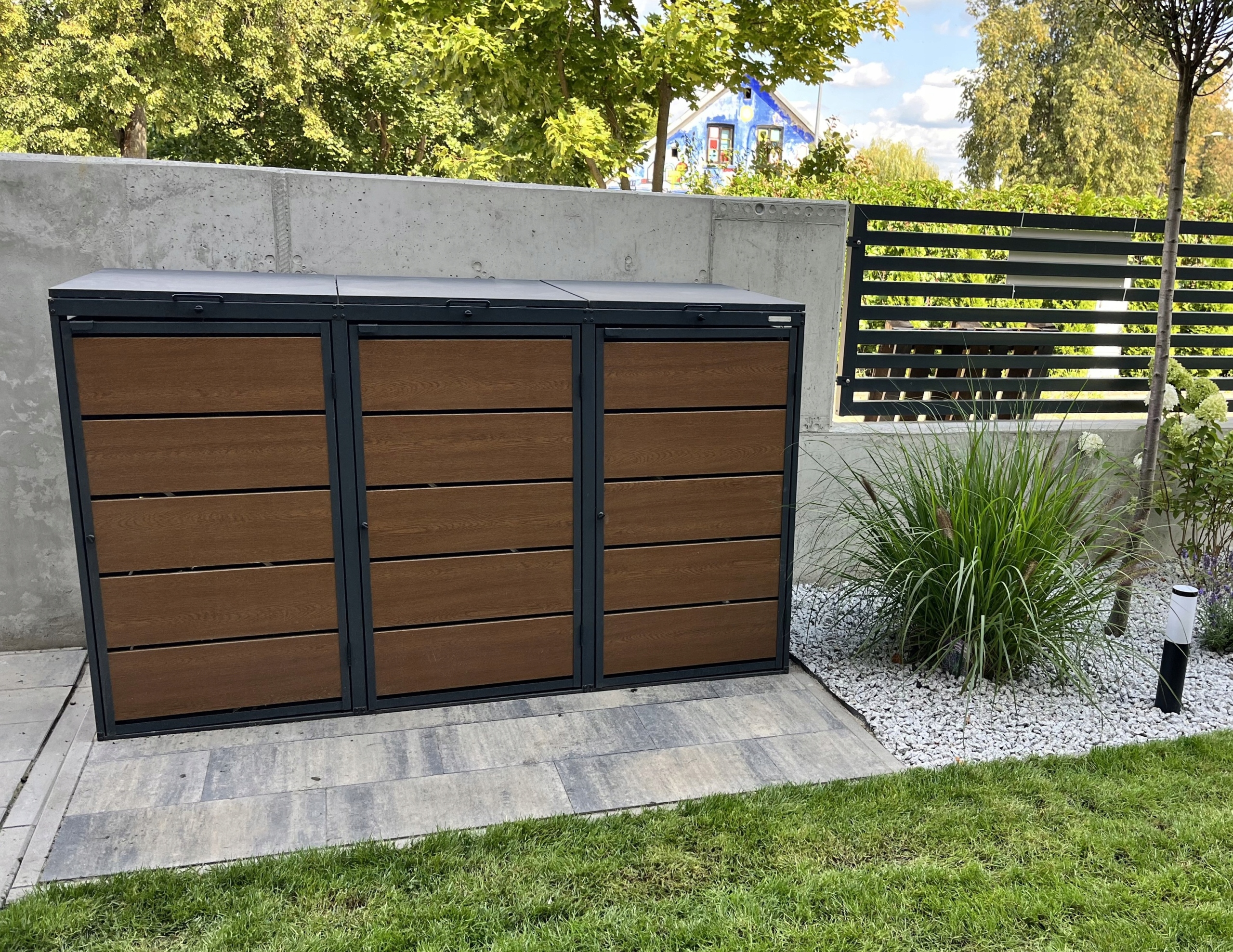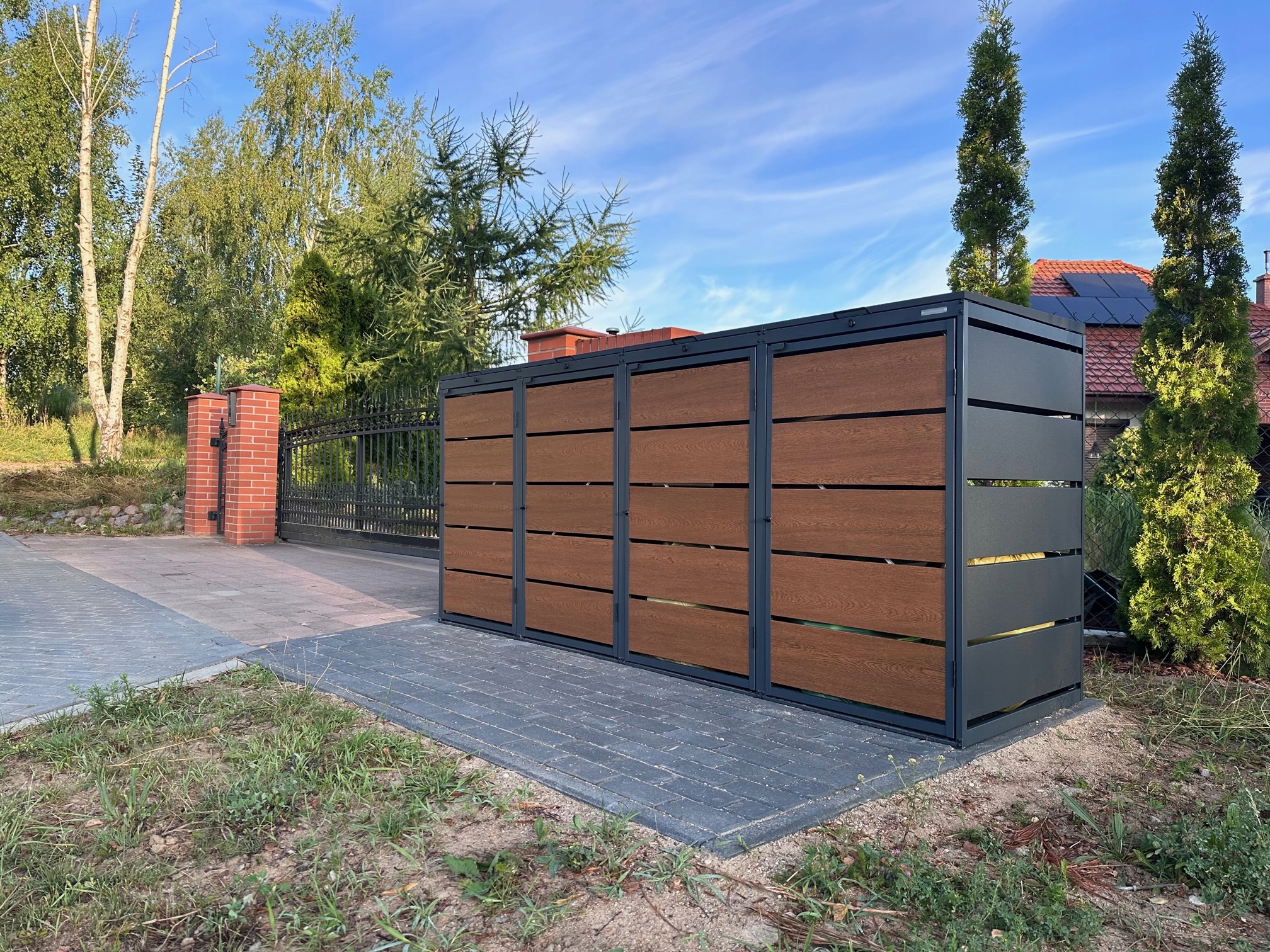Пропозиція стосується будівлі для 4 кошиків 240 л антрациту з дверима золотистого дуба.
