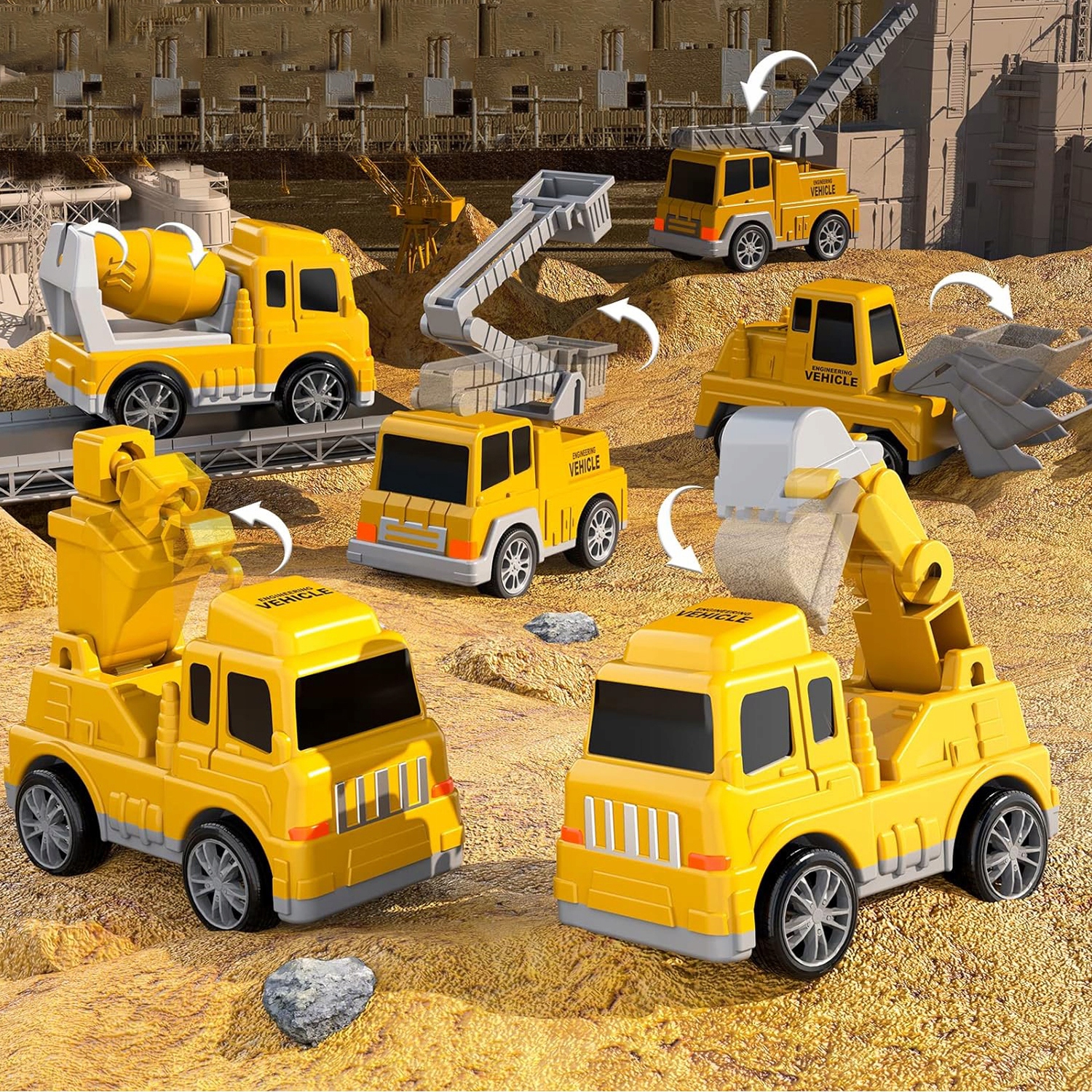 - Іграшка Construction Transporter Truck, розроблена для маленьких любителів будівництва, включає велику транспортну вантажівку та 6 міні-транспортних засобів (кран, бетономішалка, бульдозер, екскаватор, конвеєр для матеріалів і драбину), а також додаткову карту бункера для творчого використання. Використовується в іграх із пісочницею.