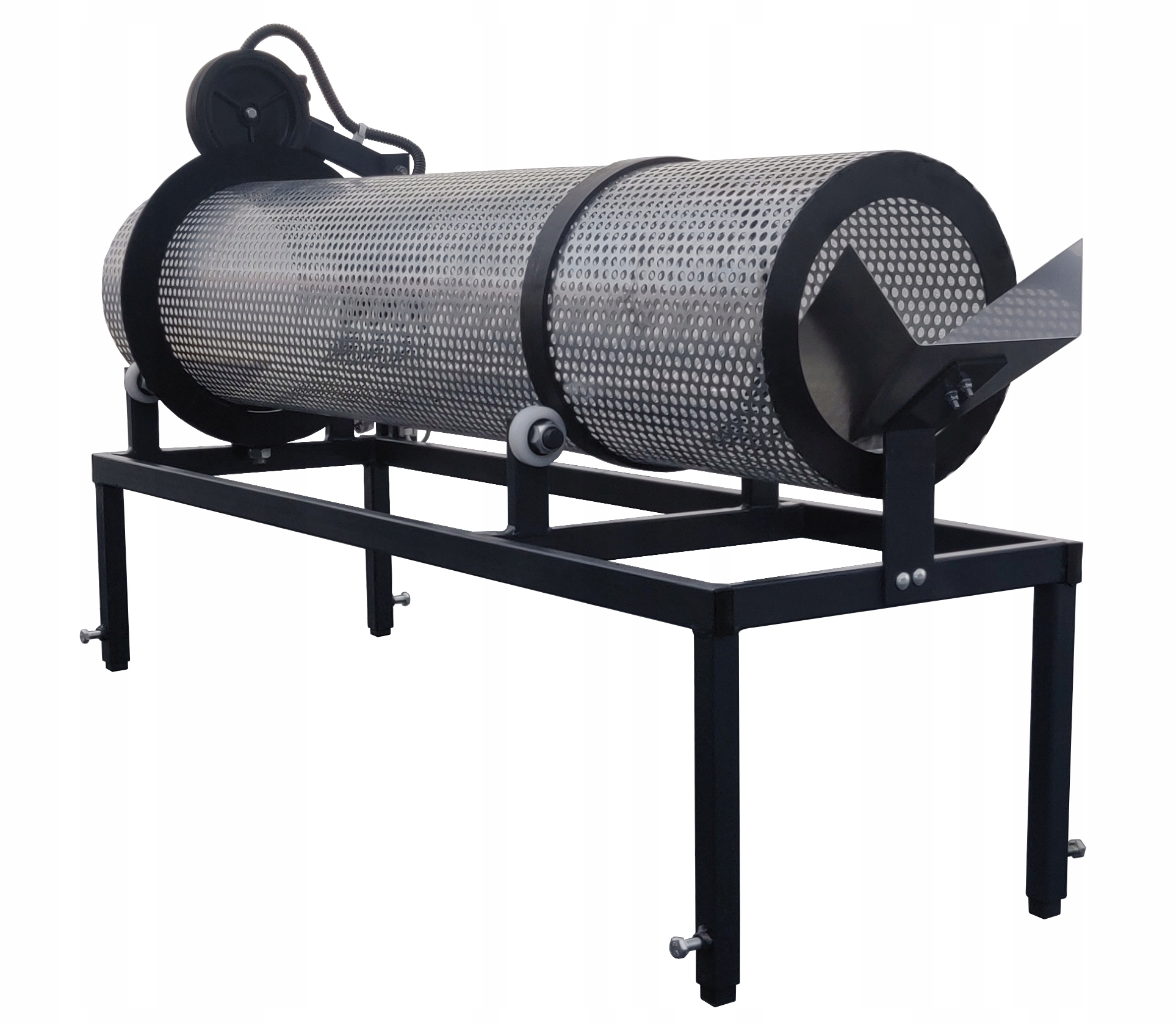 УВАГА! Пристрій завжди має бути злегка нахилений у бік вихідного отвору, щоб матеріал, який подається на просіювання, повільно рухався до вихідного отвору, а готовий продукт проходив через перфорацію барабана.