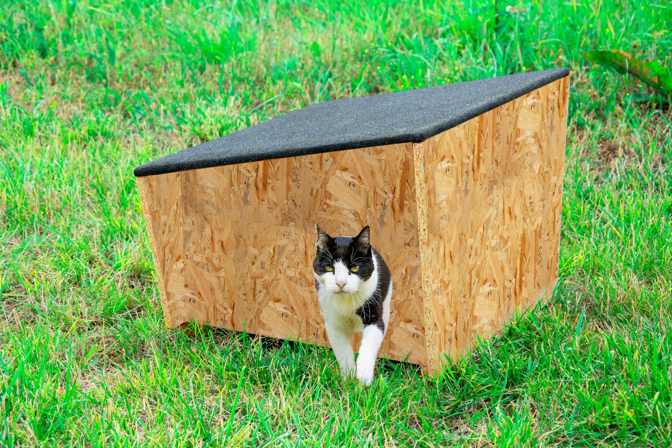 Суцільний будинок забезпечує котам тепло та захист від морозу. Це ідеальне рішення для приручених котів та вільних котів, які шукають притулку.
