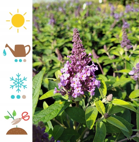 ⭐ Унікальні квіти - буддлея Sweetheart характеризується красивою синьо-фіолетовою гамою квіти, які з’являються у великій кількості суцвіття, які привертають увагу та додають саду пишноти.