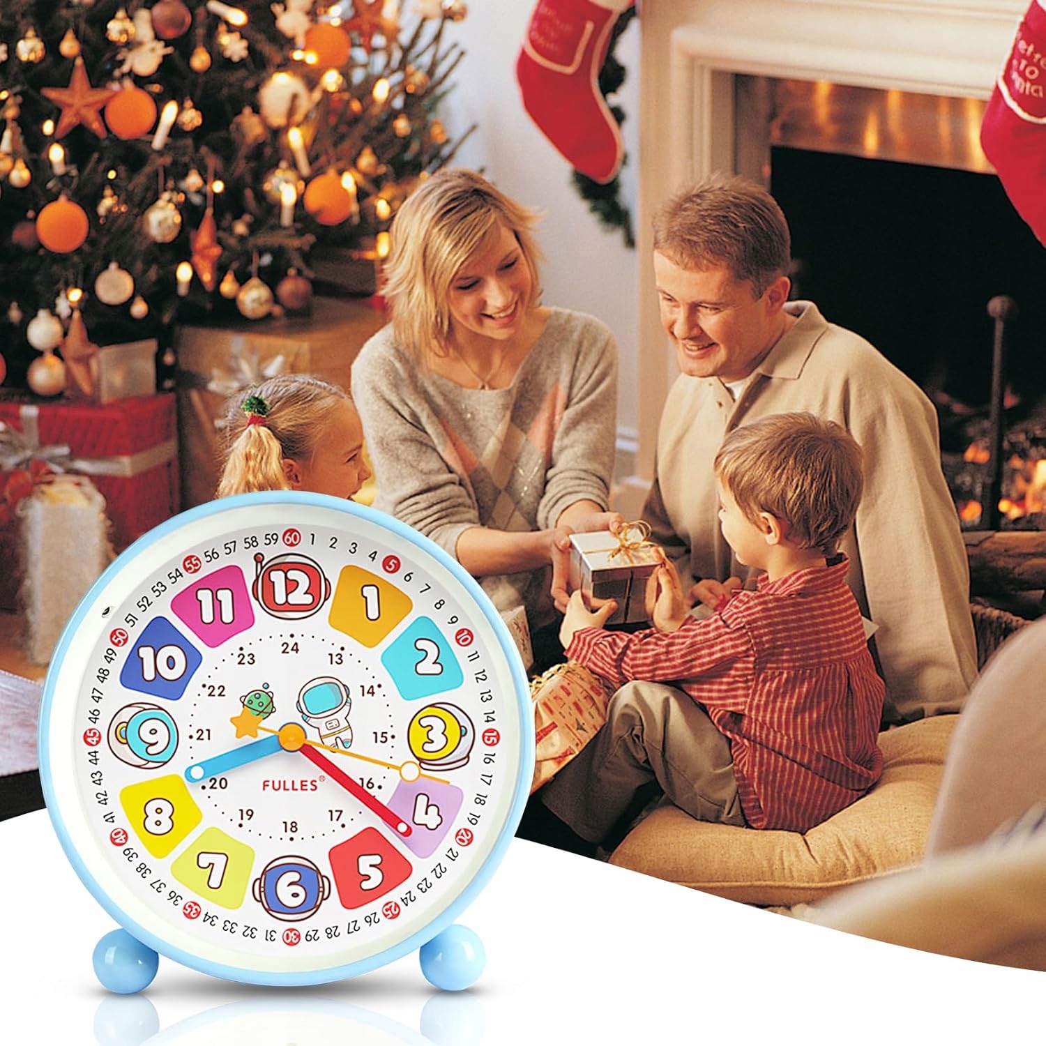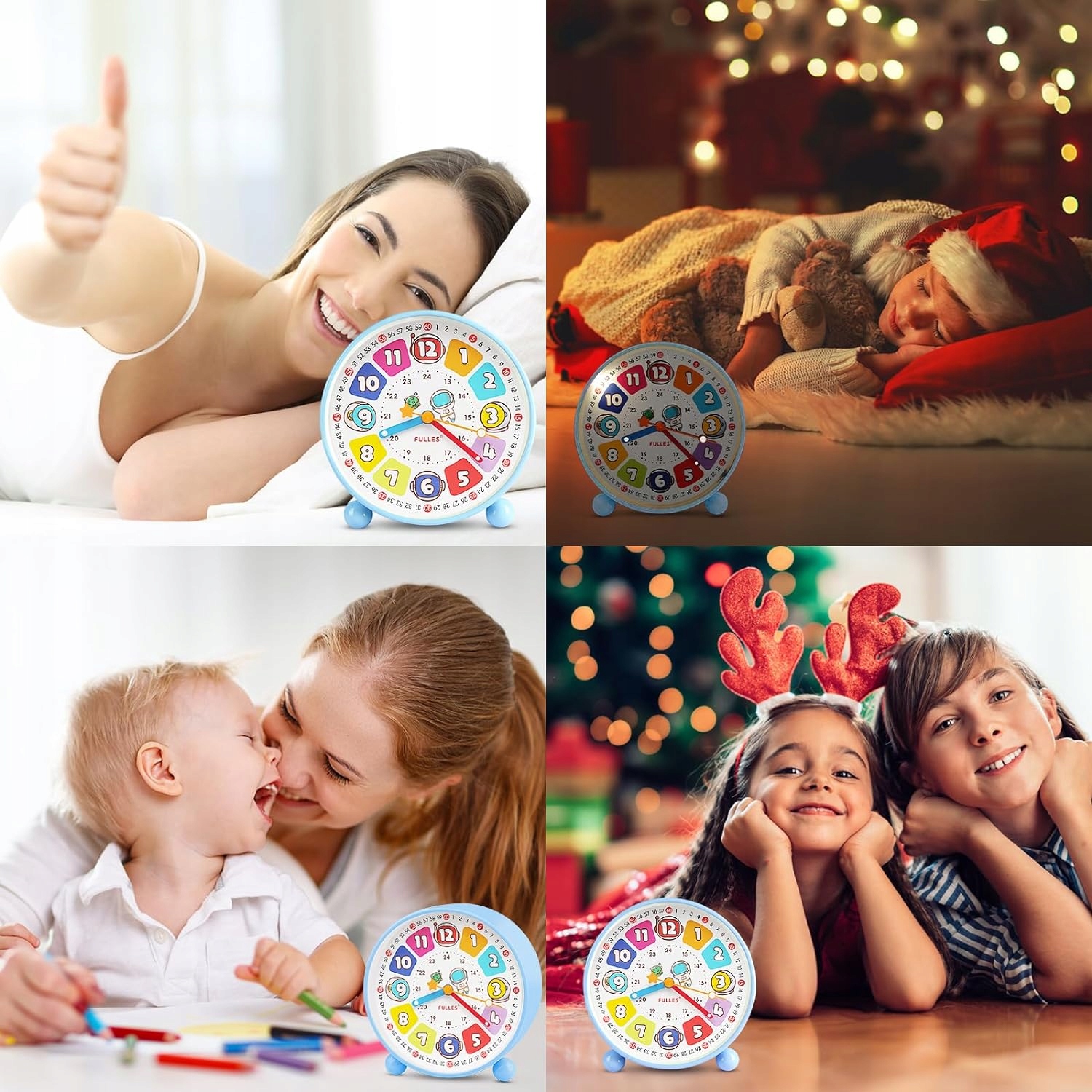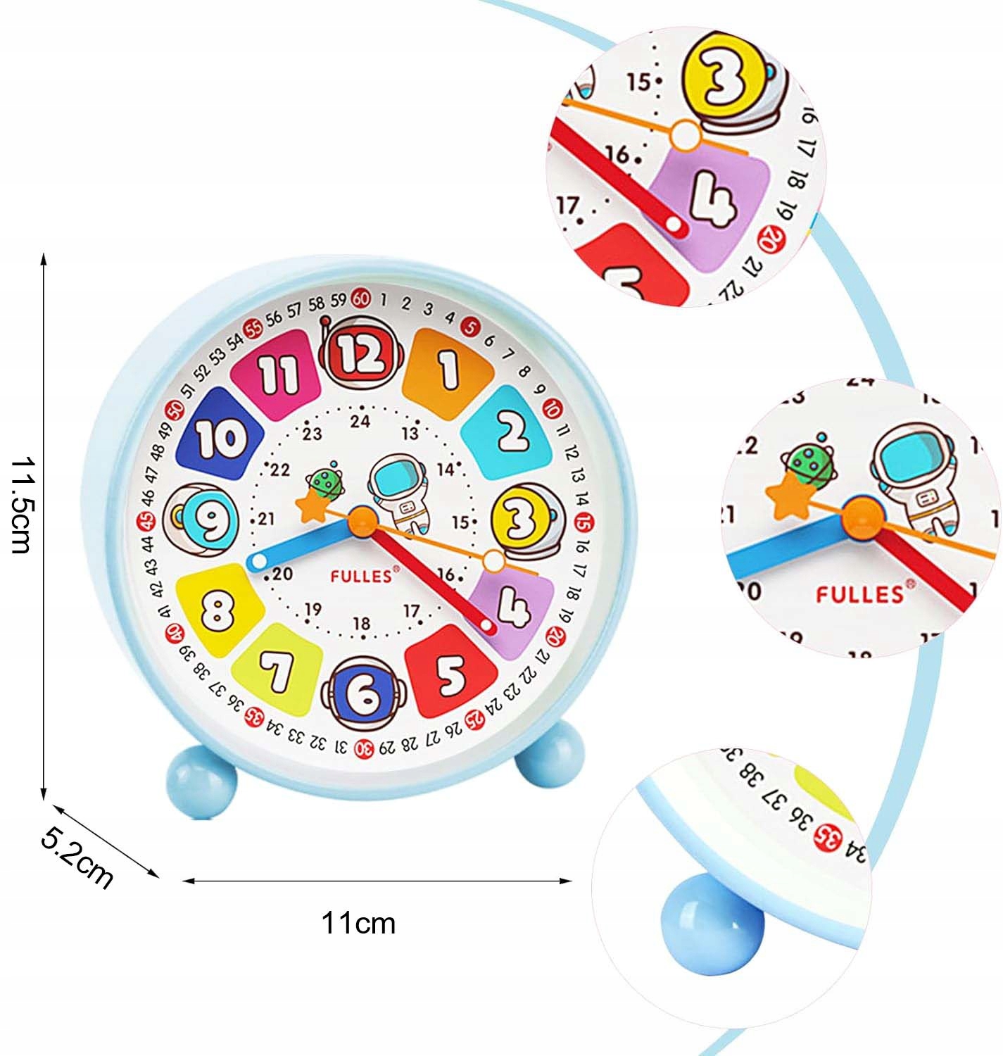 BUDZIK Z LAMPKĄ NOCNĄ DO POKUJĄ DLA DZIECI - NIEBIESKI