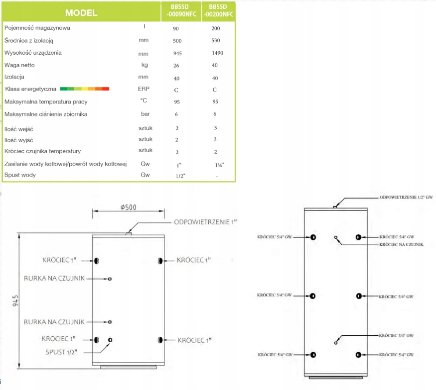 Джоулева буферна ємність з нержавіючої сталі Duplex 200 л BBSSD-00200NFC
