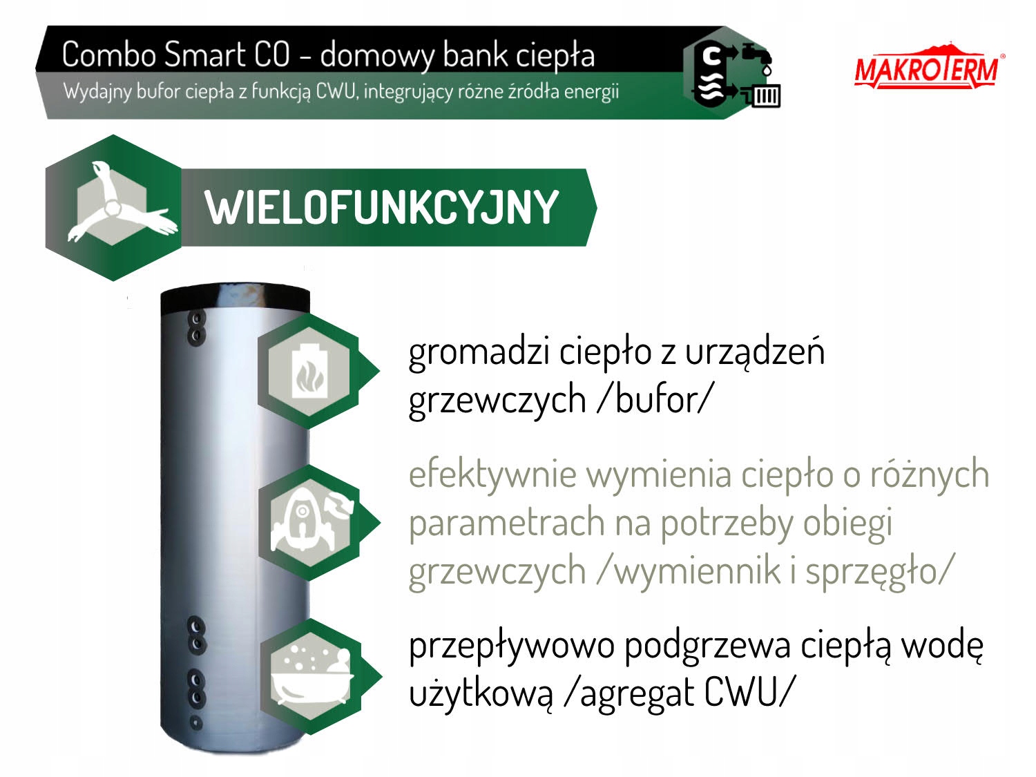 - Інновація комунальної води. Ефективне нагрівання потоку води дозволяє виробляти велику кількість DHW за короткий час, Legionella -вільні бактерії, без необхідності періодичного перегріву.