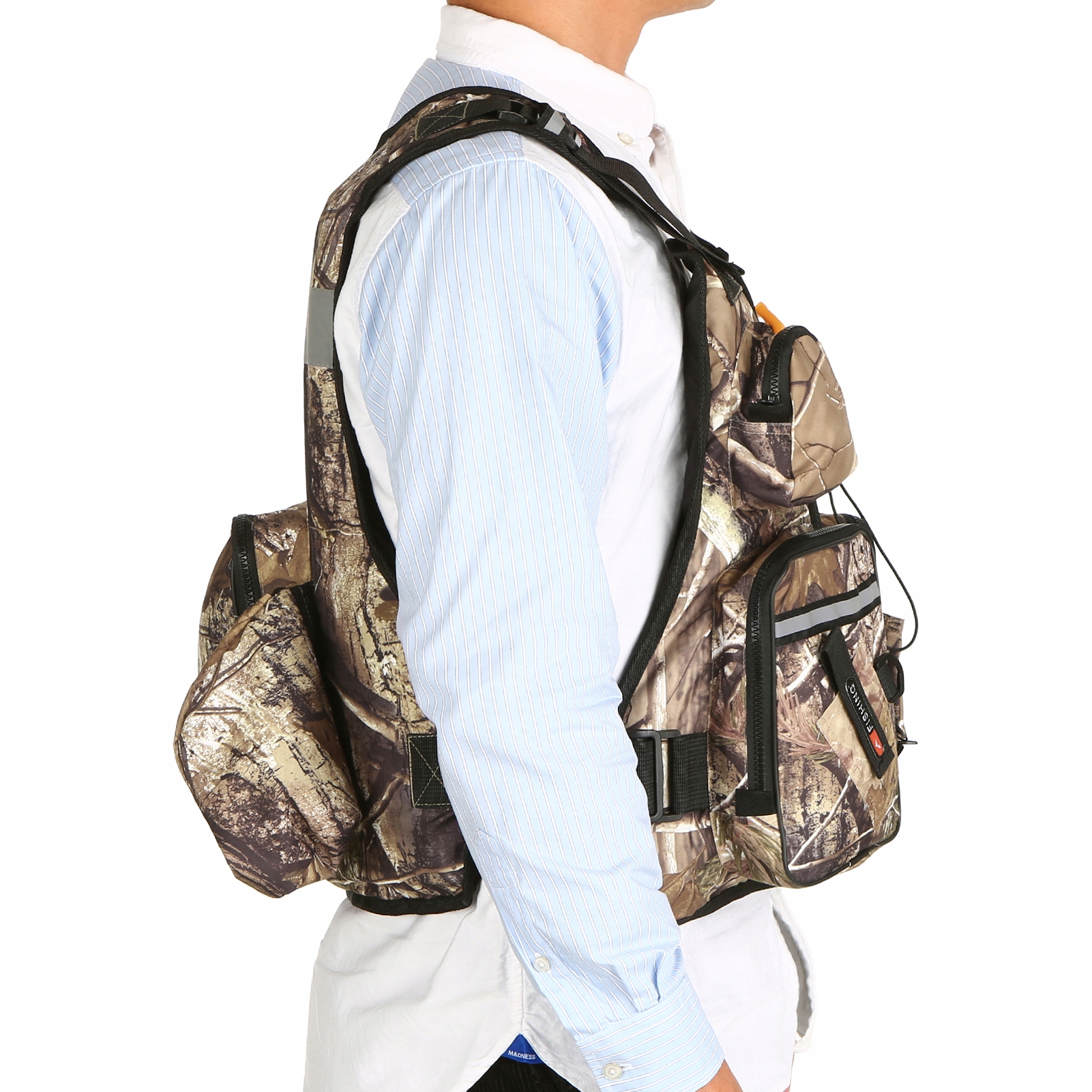 Ця рибальська куртка виготовлена з оксфордської тканини ripstop і знімного пінного наповнювача, що забезпечує тривалий термін служби. Він має кілька кишень і зовнішніх точок кріплення для зберігання та організації обладнання. Регульовані ремені та відкриті боки забезпечують велику свободу під час закидання або веслування. Це ідеальний вибір для любителів каякінгу, риболовлі, катання на човнах та інших водних видів спорту.