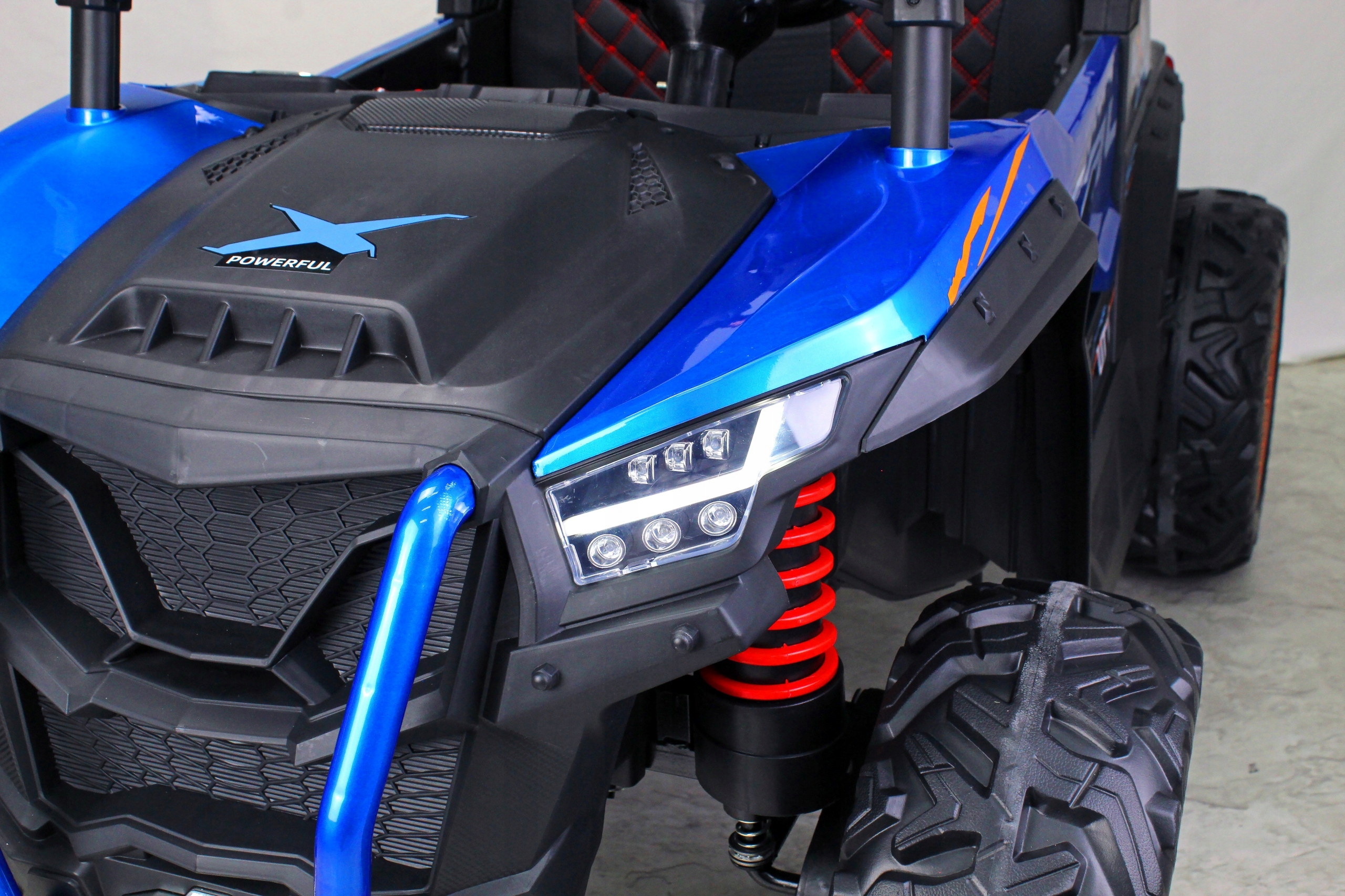 4 Дитина може керувати транспортним засобом простота використання - для переміщення, просто натисніть на педаль газу. > Коли дитина випускає його, транспортний засіб припиняється. Li> Зручна їзда - м'яке сидіння еко -нитки та тихі колеса Система підвіски пружини - гарантія рідкої та стабільної їзди. /li> Акумулятор 12V/7Ah Музична панель з USB -введенням та контролем гучності Klakson Чотири двигуни із загальною потужністю до 120 Вт (4 х 30 Вт) ременів безпеки B>