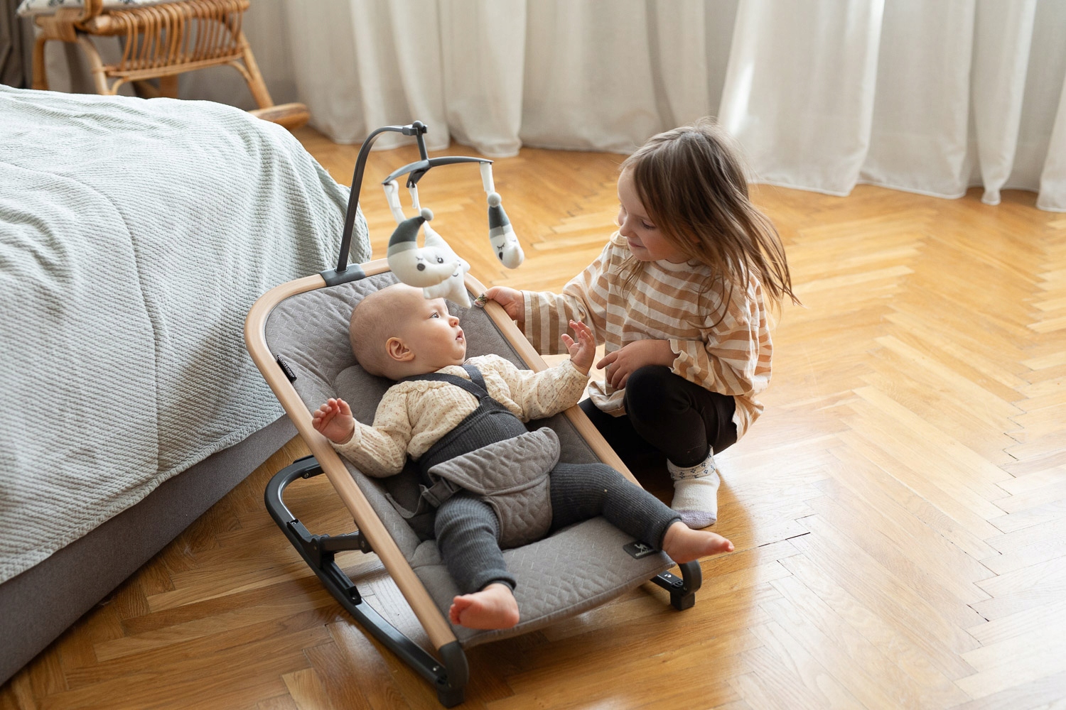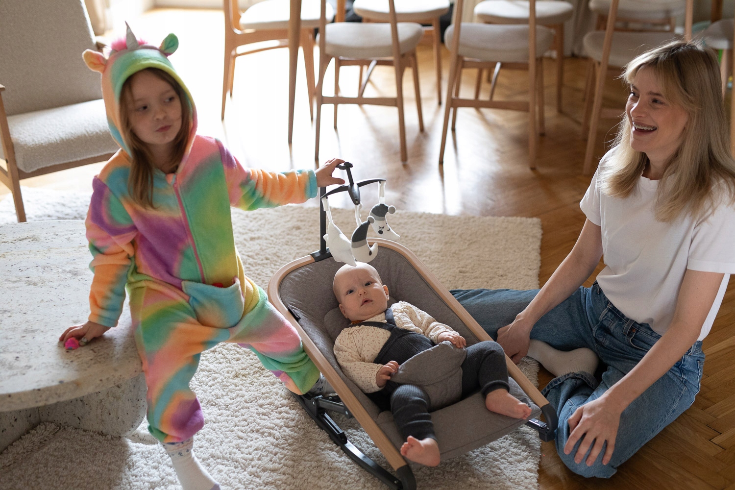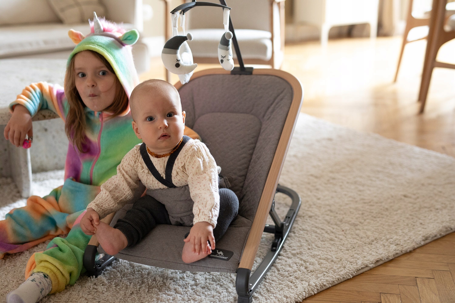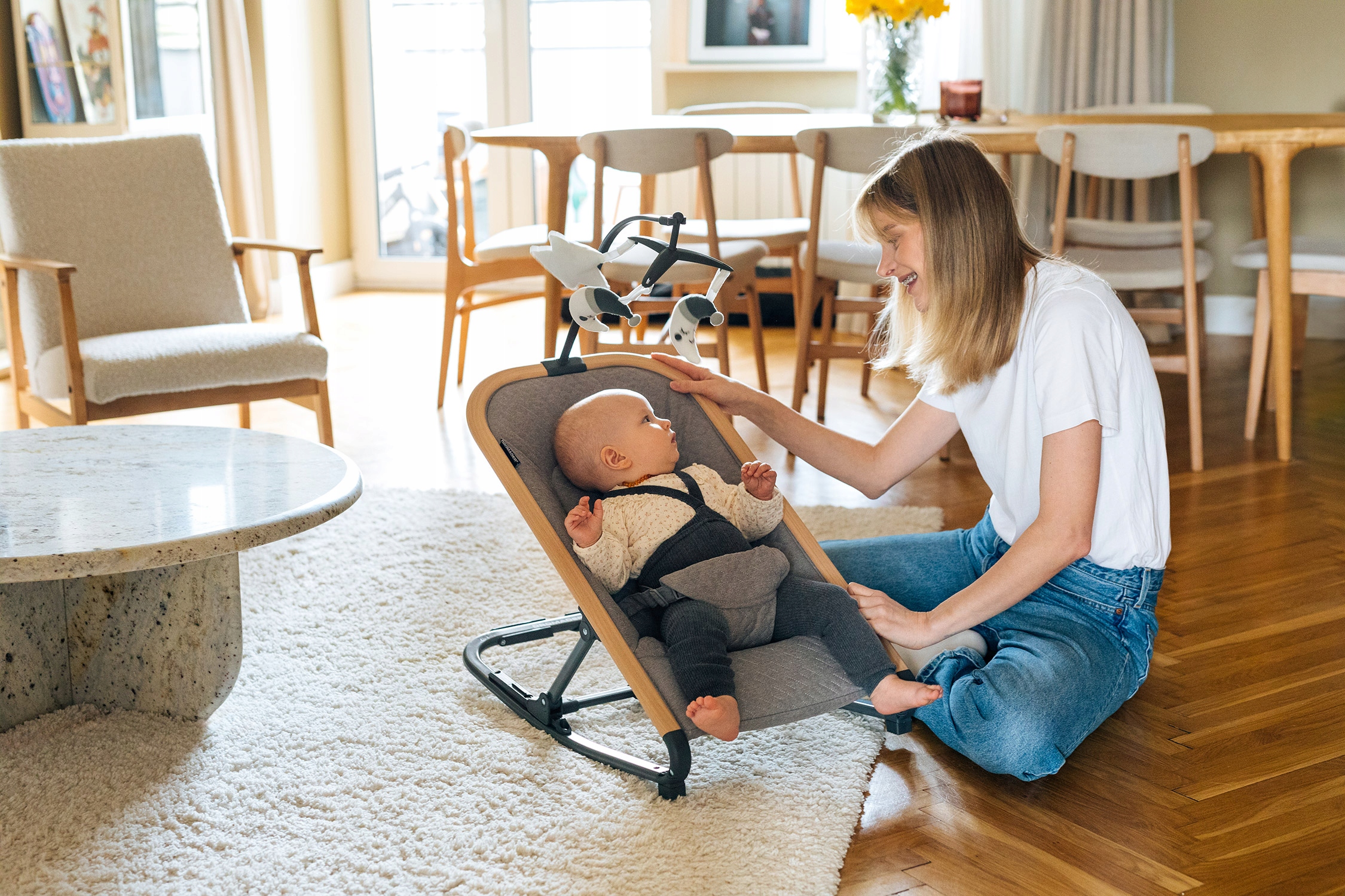 КАЧАЛКА І СТАЦІОНАРНЕ СИДІННЯ 2 в 1 - Вишибала для дитини від народження плавно переходить від ніжної гойдалки до безпечного стаціонарного сидіння. Незалежно від того, чи хочете ви заспокоїти свого малюка чи створити безпечне місце для ігор, наш викидаль для новонароджених адаптується до потреб вашої дитини
