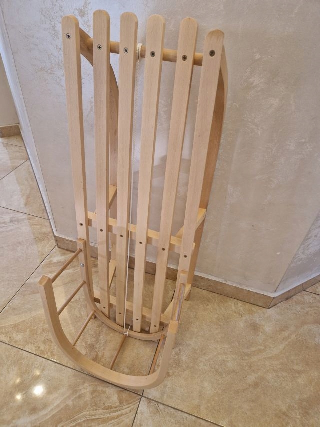 санки, виготовлені з жорсткого букового дерева пофарбованого екологічного безбарвного лаку.