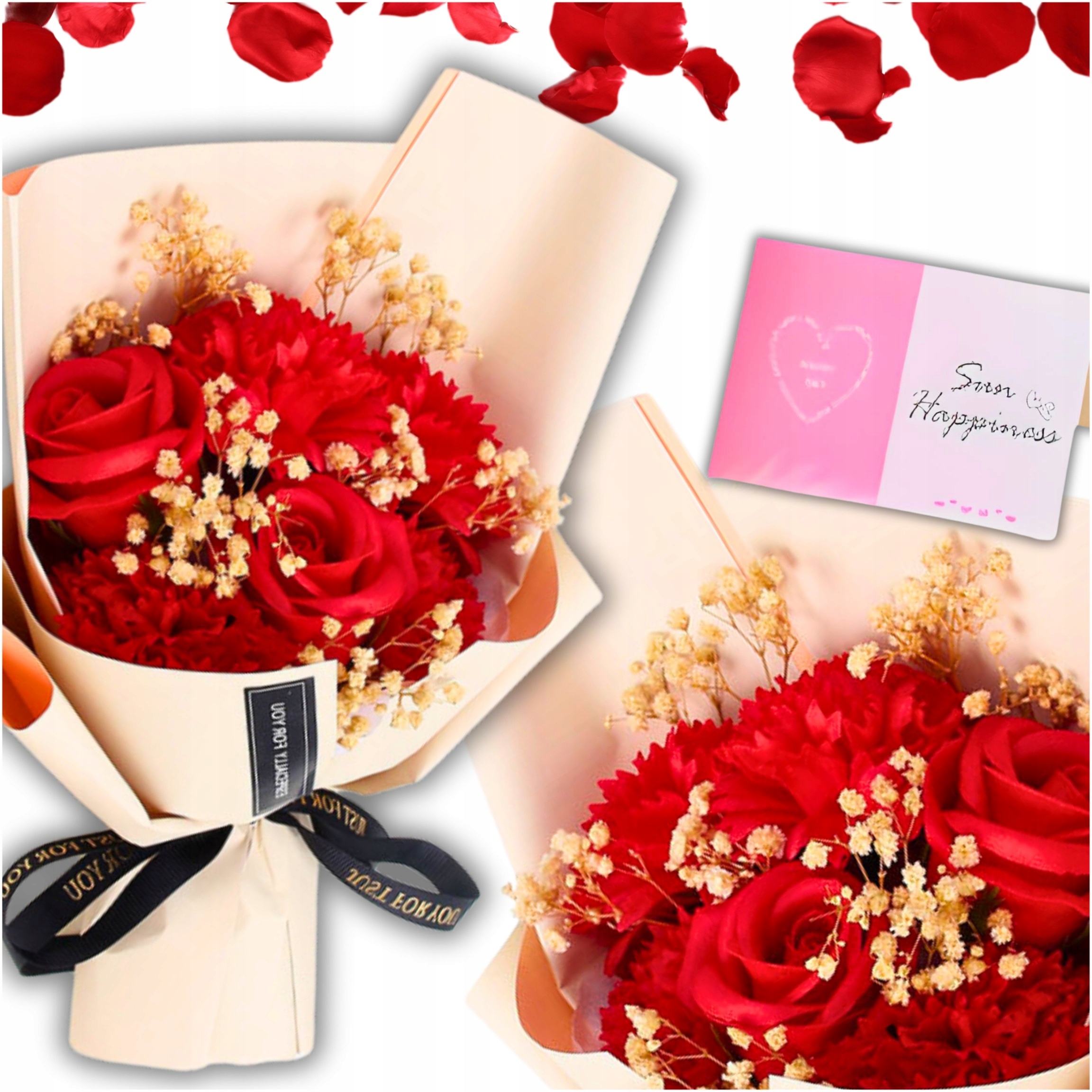 - ✔️Зробіть чарівний подарунок, який захоплює своїм блиском і символікою! Міні-букет червоних мильних троянд в елегантній сумці - ідеальний спосіб висловити свої почуття. Ідеально підходить до Дня Святого Валентина, ювілею або як романтичний подарунок без приводу.