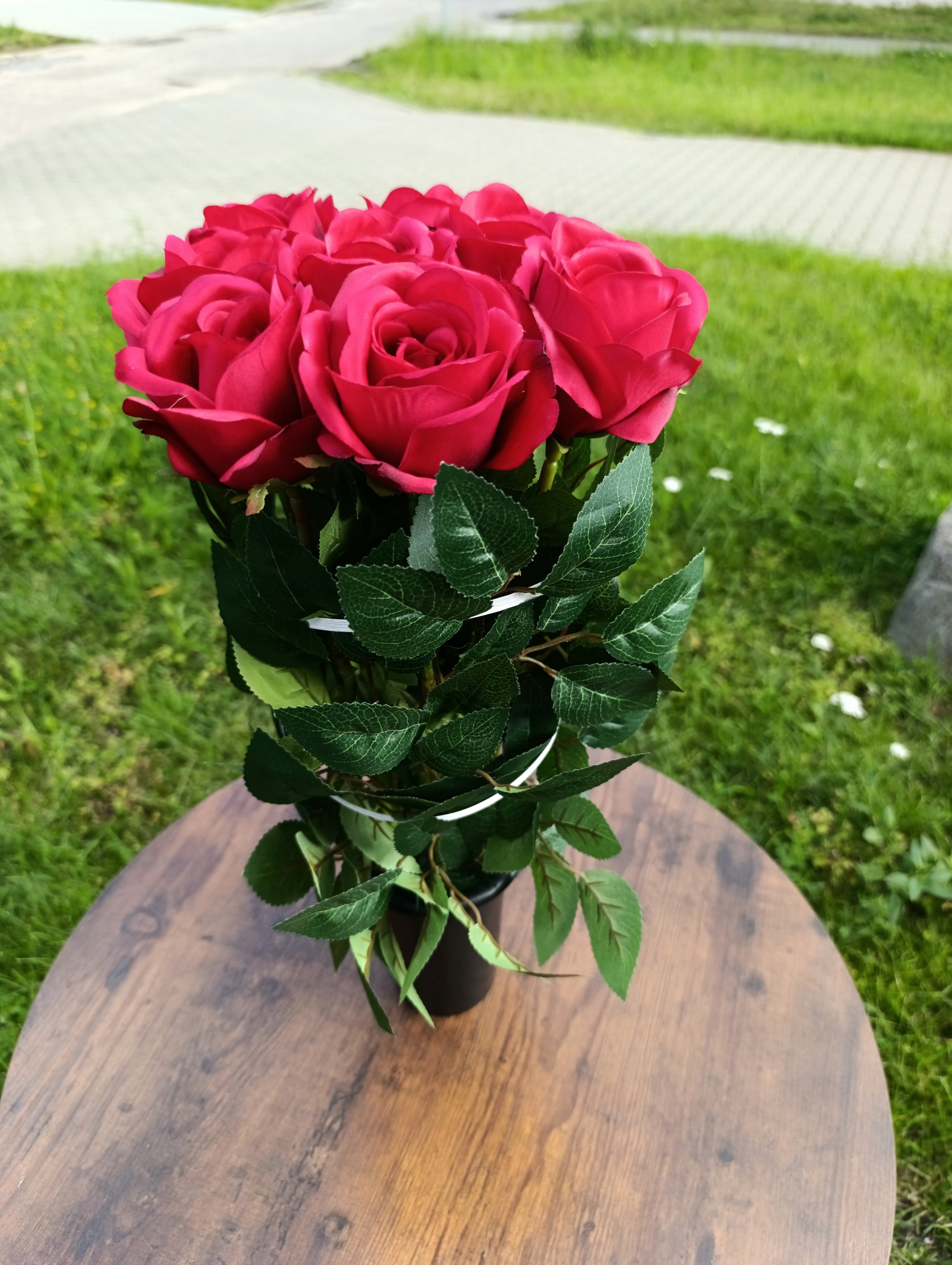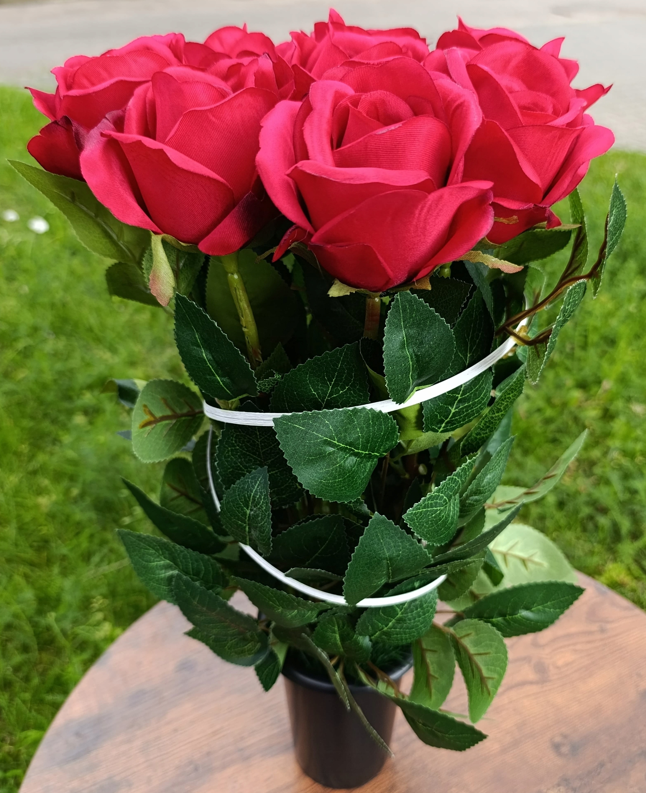 БУКЕТ ЧЕРВОНИХ ТРОЯНД ПРЕМІУМ! ШТУЧНІ КВІТИ НА ВАЗУ НА МОГИЛУ, КЛАДОВИЩЕ