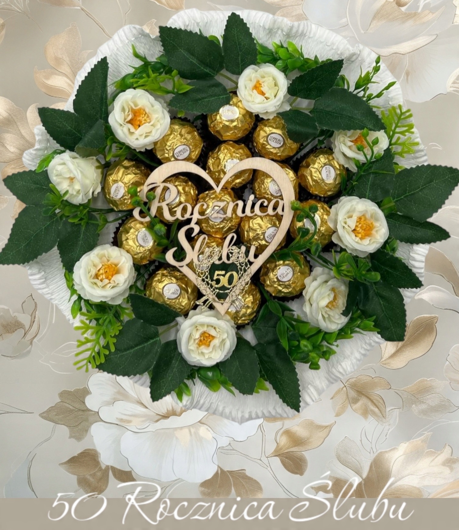 букет з цукерок 50 річниця весілля Золоте Весілля Ferrero Rocher в подарунок