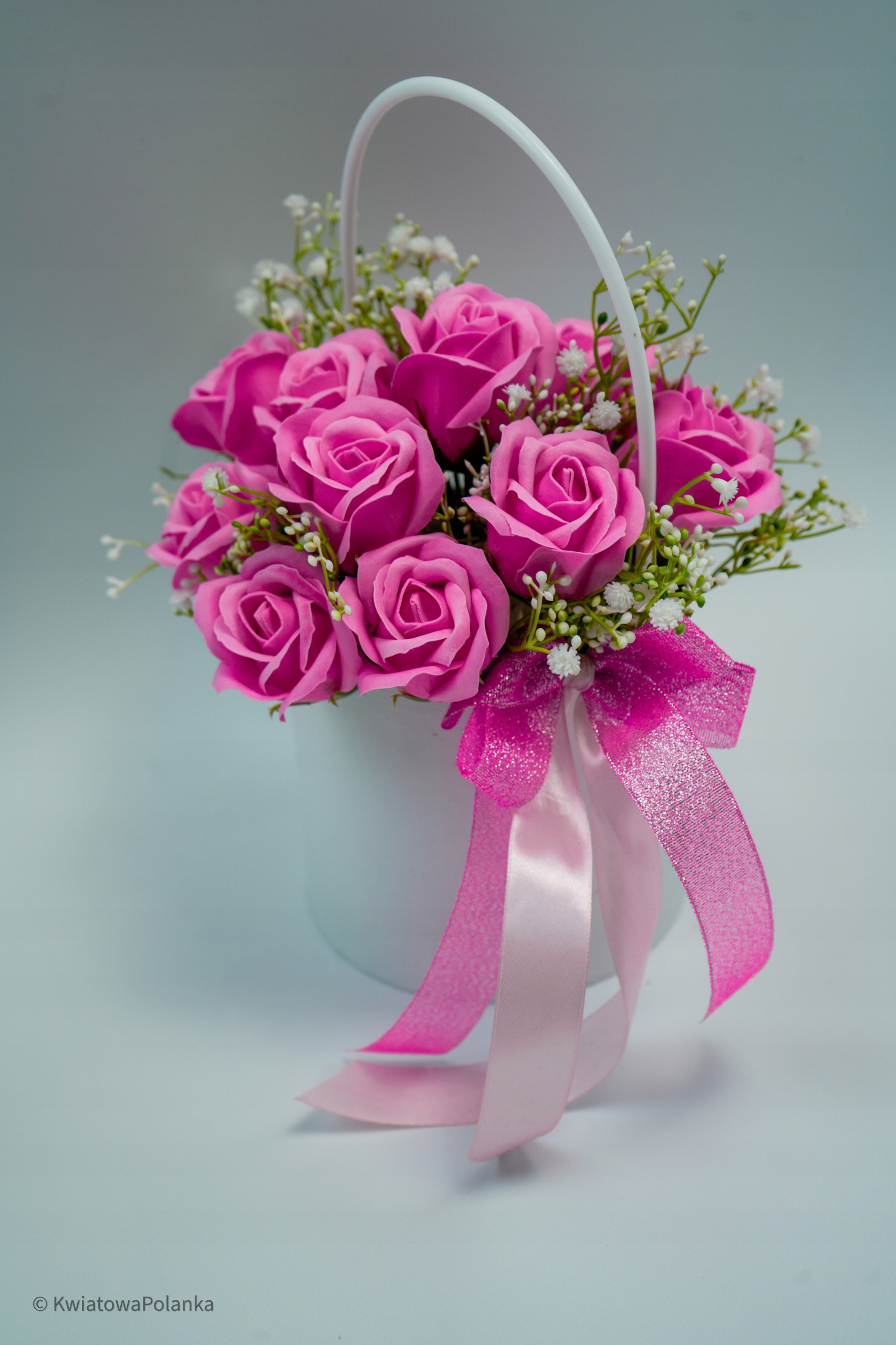 Ви шукаєте подарунок, який виглядає красиво і не в'яне через кілька днів? Цей букет з рожевих мильних квітів - хіт. Організований у білому кошику, він буде ідеальним для дня народження, жіночого дня, Дня Святого Валентина або просто без можливості.