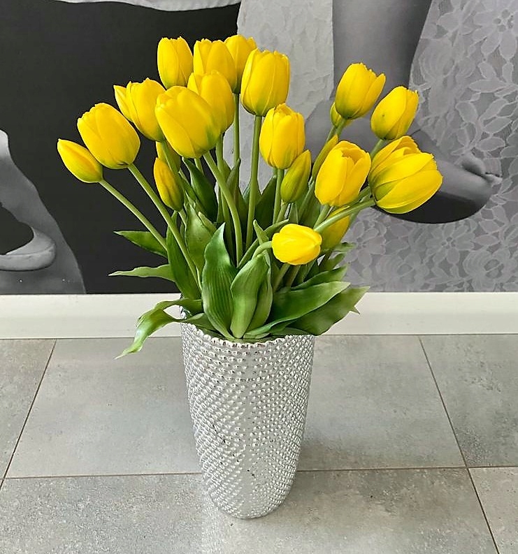 силіконові тюльпани виглядають практично живими, тому найкраще використовувати їх просто як прикраса. Вони дуже приємні на дотик. Вони будуть красиво виглядати у скляній вазі, розміщеній посередині комода, столу або на підвіконні. Їх найбільша перевага - опір пошкодженню. Крім того, вони практично не потребують догляду. Щоб підкреслити їх справжність, воду можна виливати в скляну посуд. Нічого не відбудеться з квітами, а тюльпани будуть виглядати як свіжо зламані
