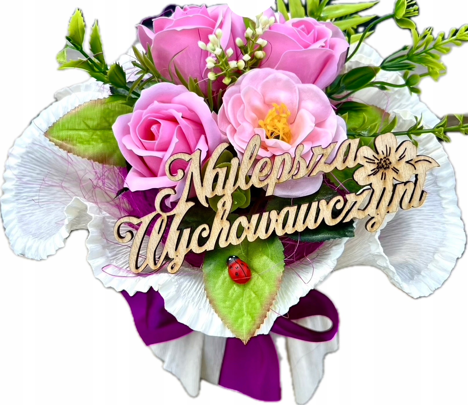 Bukiet Mydlany Mydlane Kwiaty dla Wychowawczyni Róże + Gruby Ręcznik Napis